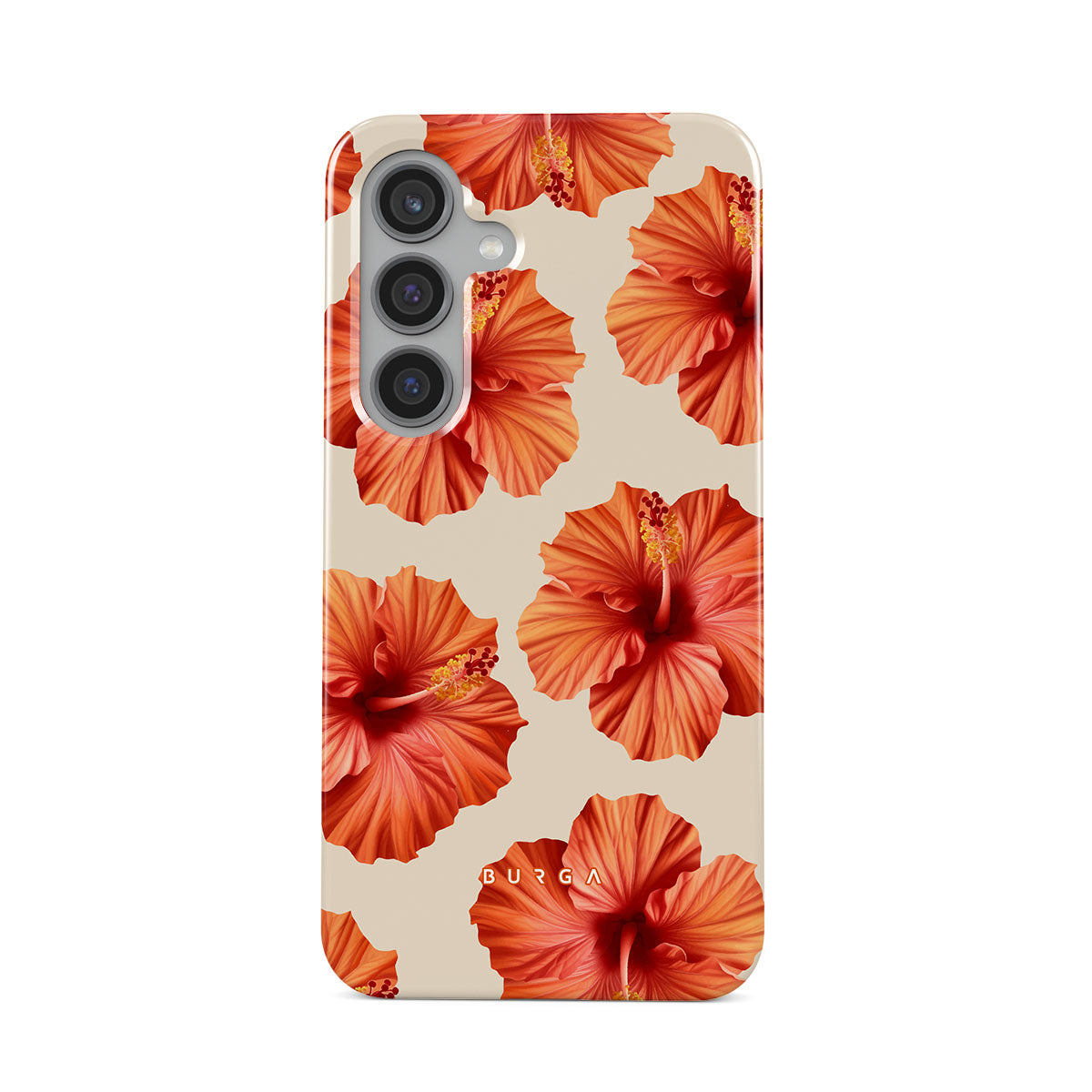 Transport yourself to a lush tropical escape with Bonita. Featuring bold, beautiful hibiscus blooms that pop against a creamy backdrop, this Samsung Galaxy S24 Plus phone case design is perfect for those who dream of vibrant, floral beauty and exotic adventures.