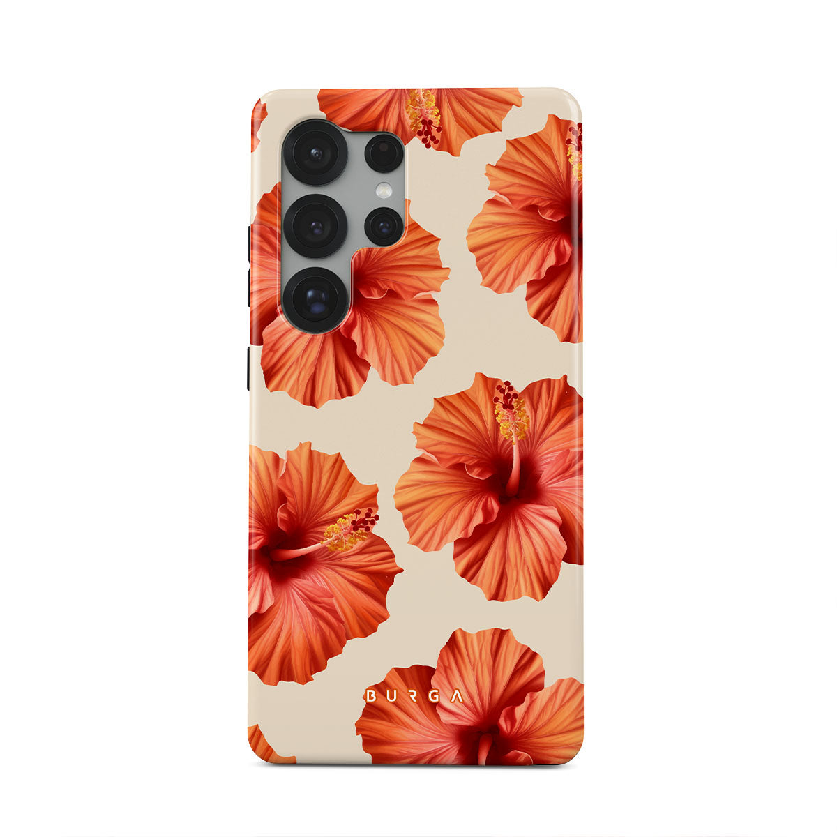 Transport yourself to a lush tropical escape with Bonita. Featuring bold, beautiful hibiscus blooms that pop against a creamy backdrop, this Samsung Galaxy S25 Ultra phone case design is perfect for those who dream of vibrant, floral beauty and exotic adventures.