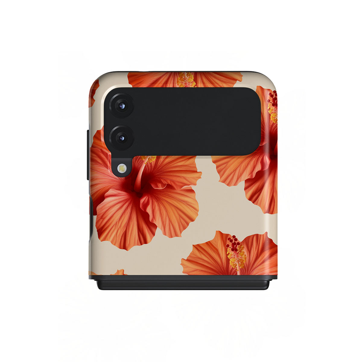 Transport yourself to a lush tropical escape with Bonita. Featuring bold, beautiful hibiscus blooms that pop against a creamy backdrop, this Samsung Galaxy Z Flip 3 phone case design is perfect for those who dream of vibrant, floral beauty and exotic adventures.