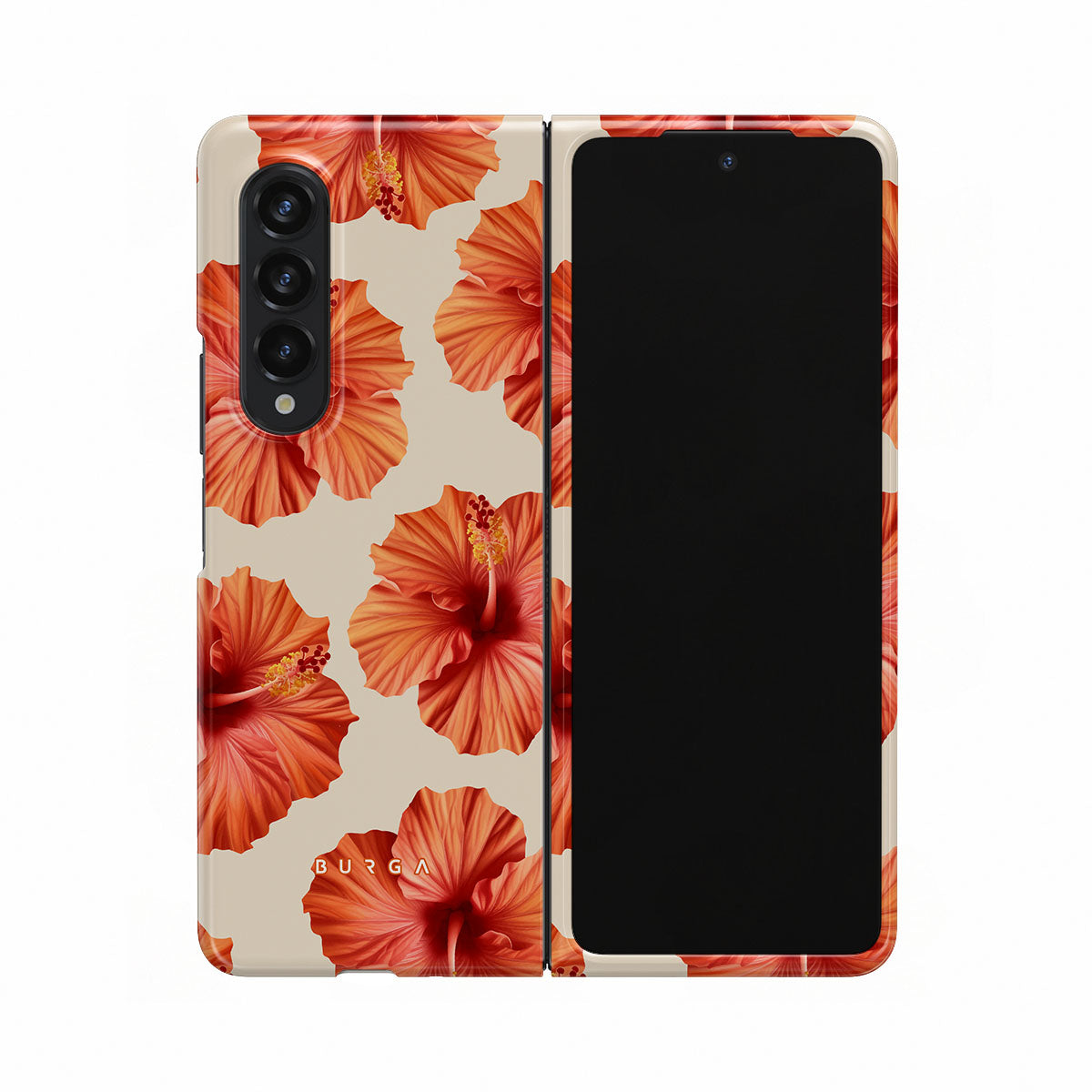 Transport yourself to a lush tropical escape with Bonita. Featuring bold, beautiful hibiscus blooms that pop against a creamy backdrop, this Samsung Galaxy Z Fold 3 phone case design is perfect for those who dream of vibrant, floral beauty and exotic adventures.