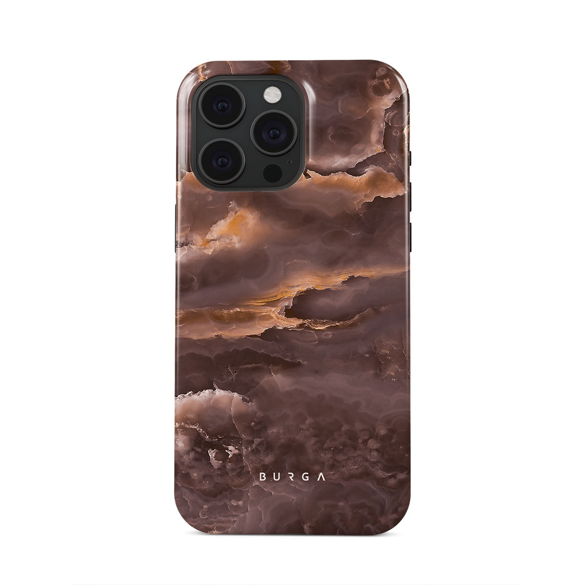 The bonfire starts to flicker – it's time to gather more wood. With a brown marble iPhone 15 Pro phone case design inspired by a bonfire flame, carry a feeling of content and excitement wherever you go. The protective case is needed in a hike, but a stylish accessory will match your aesthetic even on a lazy Sunday.