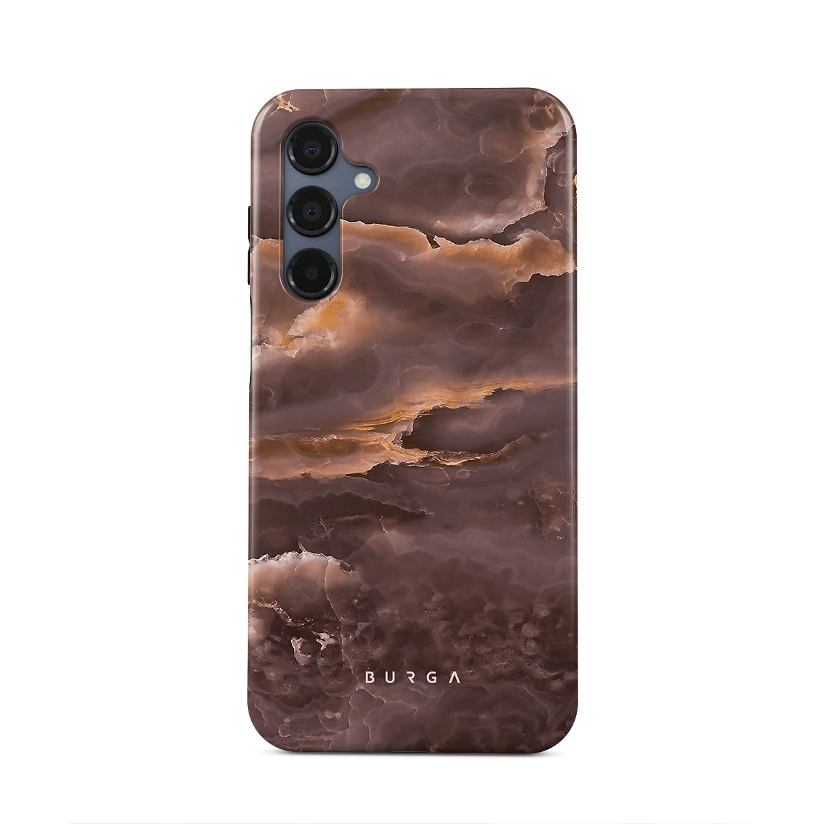The bonfire starts to flicker – it's time to gather more wood. With a brown marble Samsung Galaxy A16 phone case design inspired by a bonfire flame, carry a feeling of content and excitement wherever you go. The protective case is needed in a hike, but a stylish accessory will match your aesthetic even on a lazy Sunday.