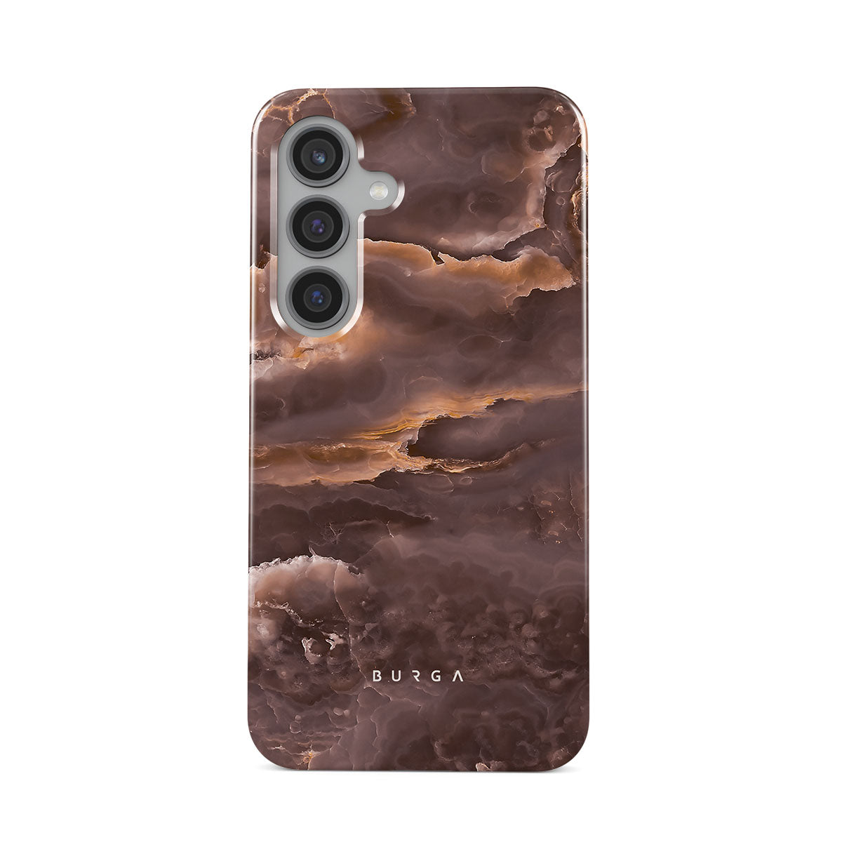 The bonfire starts to flicker – it's time to gather more wood. With a brown marble Samsung Galaxy S24 Plus phone case design inspired by a bonfire flame, carry a feeling of content and excitement wherever you go. The protective case is needed in a hike, but a stylish accessory will match your aesthetic even on a lazy Sunday.