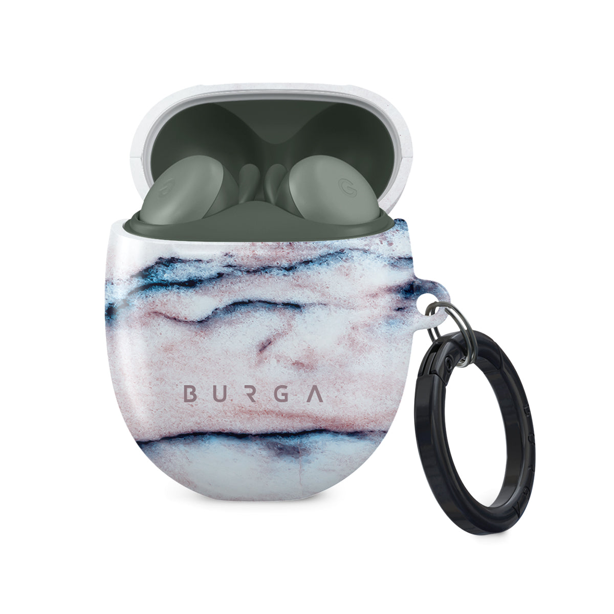 Soft, pastel accessory is a must, and our soft Bubble Gum Google Pixel Buds A case cover is just that. A minimalistic marble pattern with a pink gradient and deep blue swirls will add the needed touch of softness to every wardrobe while protecting the case from wear and tear. Our case fits perfectly snug around Google Pixel Buds A . “Like a glove!” one might say. And it won’t disrupt the wireless charging capabilities of the newer model. There’s even an LED light indicator to prove it (don’t worry, wired charging still works, too). When fitted, the BURGA case will protect the delicate Google Pixel Buds A case beneath it from scratches, bumps, and drops while remaining scratch-free itself. Our signature design pattern prints are High Quality, and will never peel or fade away- thanks to our unique printing technology. And finally, a handy carabiner is there to make your life easier and more convenient: just snap it around your keys or belt loop and tackle the day head-on. Your music is right there by your side when you need it.