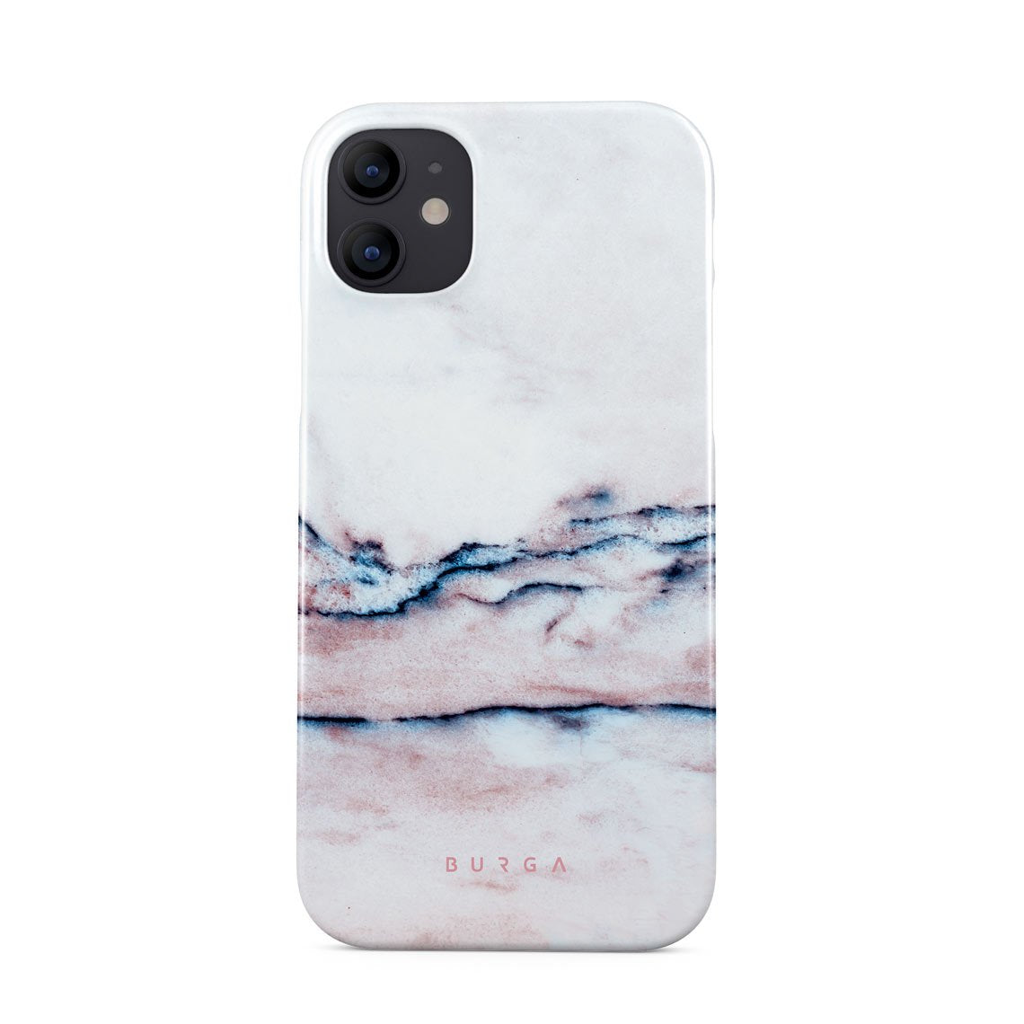 A pastel phone case is a must in every collection, and our soft Bubble Gum iPhone 12 Mini phone case is the one. The minimalistic design features a pink gradient with deep blue swirls in a marble pattern. Such a hard-shell case will provide heavy-duty protection while adding a touch of pastel to your collection