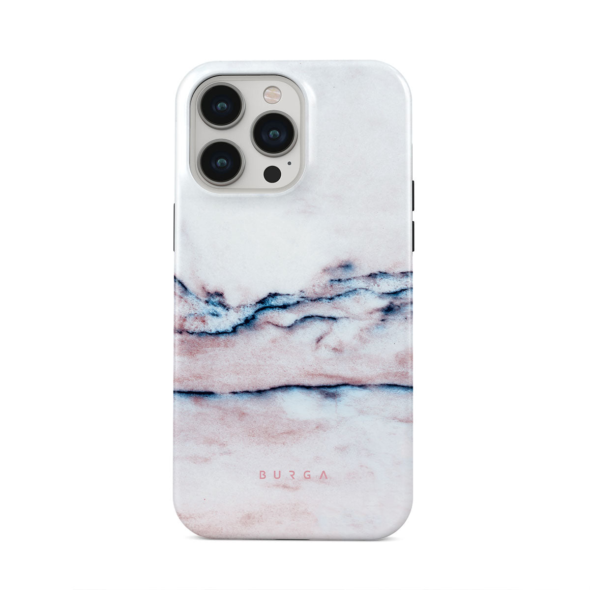 A pastel phone case is a must in every collection, and our soft Bubble Gum iPhone 13 Pro phone case is the one. The minimalistic design features a pink gradient with deep blue swirls in a marble pattern. Such a hard-shell case will provide heavy-duty protection while adding a touch of pastel to your collection