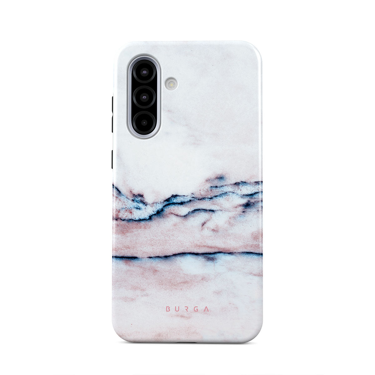 A pastel phone case is a must in every collection, and our soft Bubble Gum Samsung Galaxy A36 5G phone case is the one. The minimalistic design features a pink gradient with deep blue swirls in a marble pattern. Such a hard-shell case will provide heavy-duty protection while adding a touch of pastel to your collection