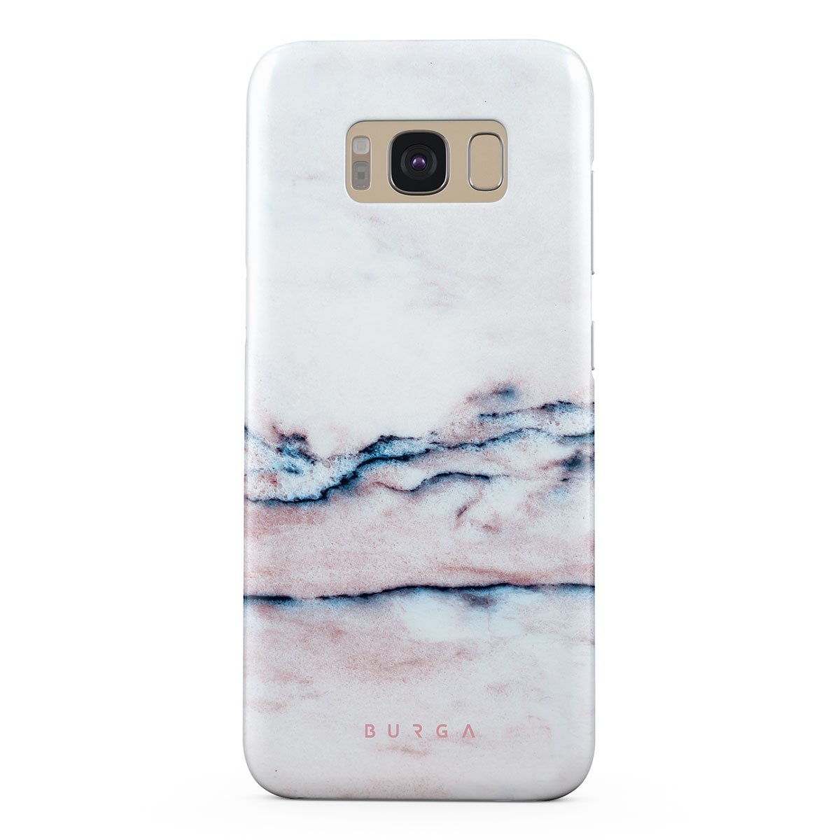 A pastel phone case is a must in every collection, and our soft Bubble Gum Samsung Galaxy S8 phone case is the one. The minimalistic design features a pink gradient with deep blue swirls in a marble pattern. Such a hard-shell case will provide heavy-duty protection while adding a touch of pastel to your collection