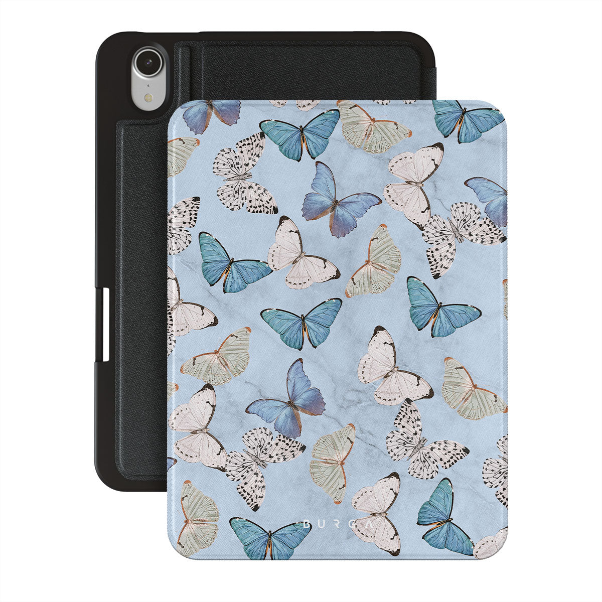 Pastel blue and a playful pattern of summery butterflies create a dreamy combination in our iPad Mini 8.3 (A17 Pro/6th Gen) folio case. Carry the feeling of the butterflies in your stomach while protecting your iPad from any dangers, as the hard-shell case will keep it sound and safe.