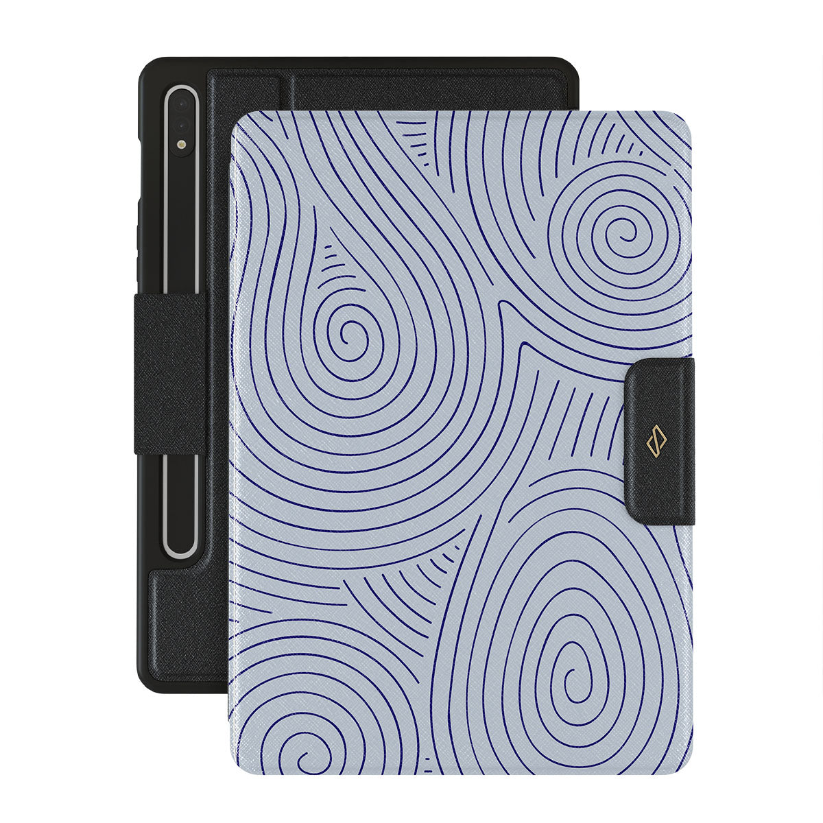 The hypnotizing topographic circle pattern of our Calm Sailing Samsung Galaxy Tab S10+ folio case is a must-have for those hectic summer days. Add some anchoring calmness to your day with the help of the soft blue color featured in this design! We can guarantee that this case will keep you calm not only by using color theory but also by keeping your Galaxy Tab safe and sound!
