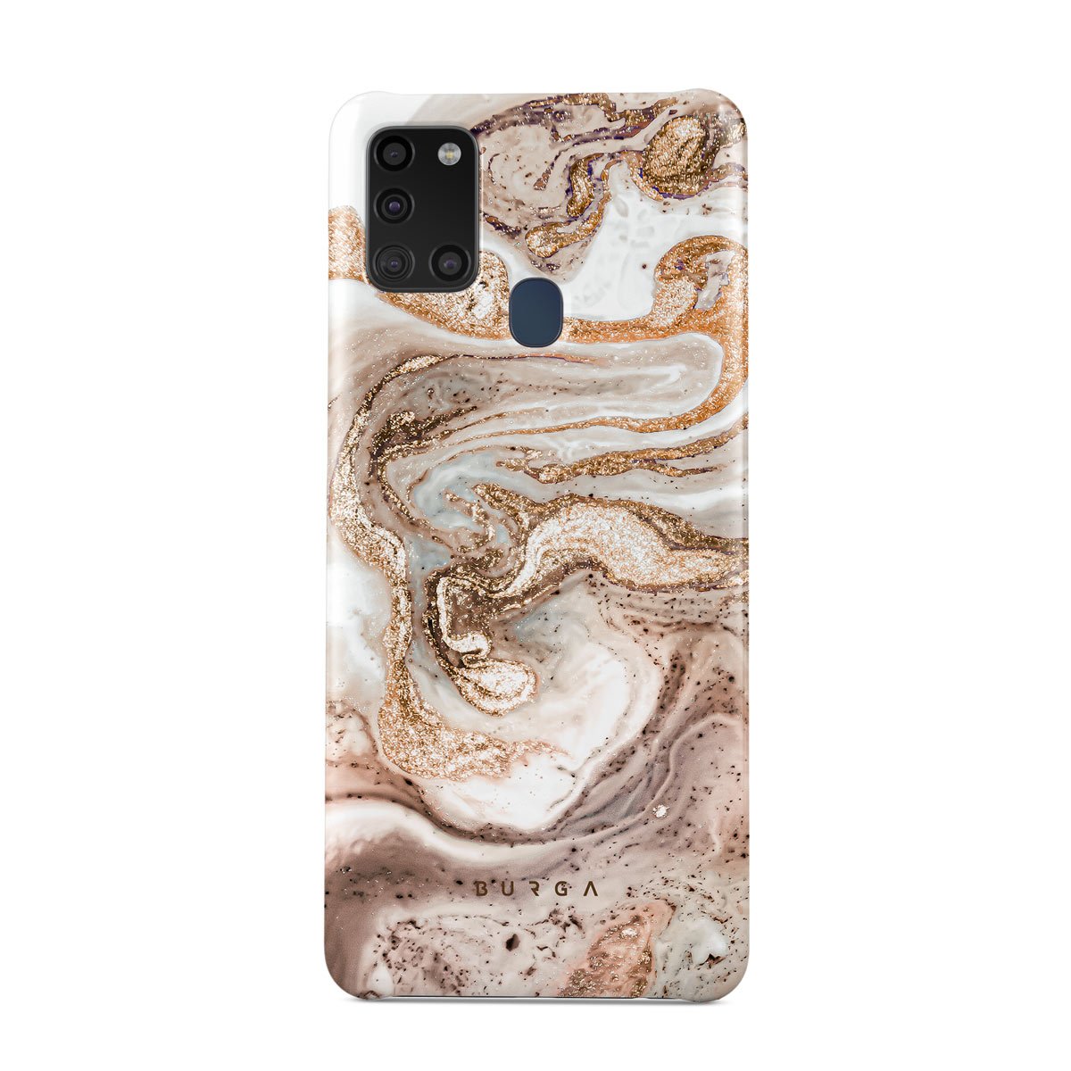 Our enchanting Cappuccino Samsung Galaxy A21s 4G phone case showcases a sophisticated and creamy marble pattern with golden swirls in it. The marble dream radiates elegance and luxury and is guaranteed to add some to your style.