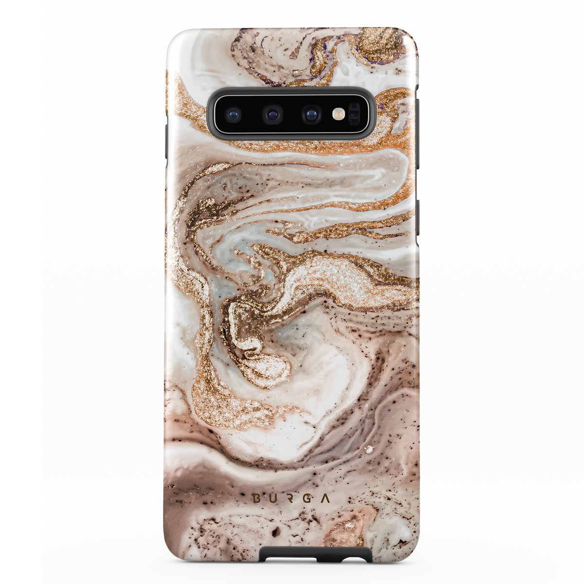 Our enchanting Cappuccino Samsung Galaxy S10 phone case showcases a sophisticated and creamy marble pattern with golden swirls in it. The marble dream radiates elegance and luxury and is guaranteed to add some to your style.