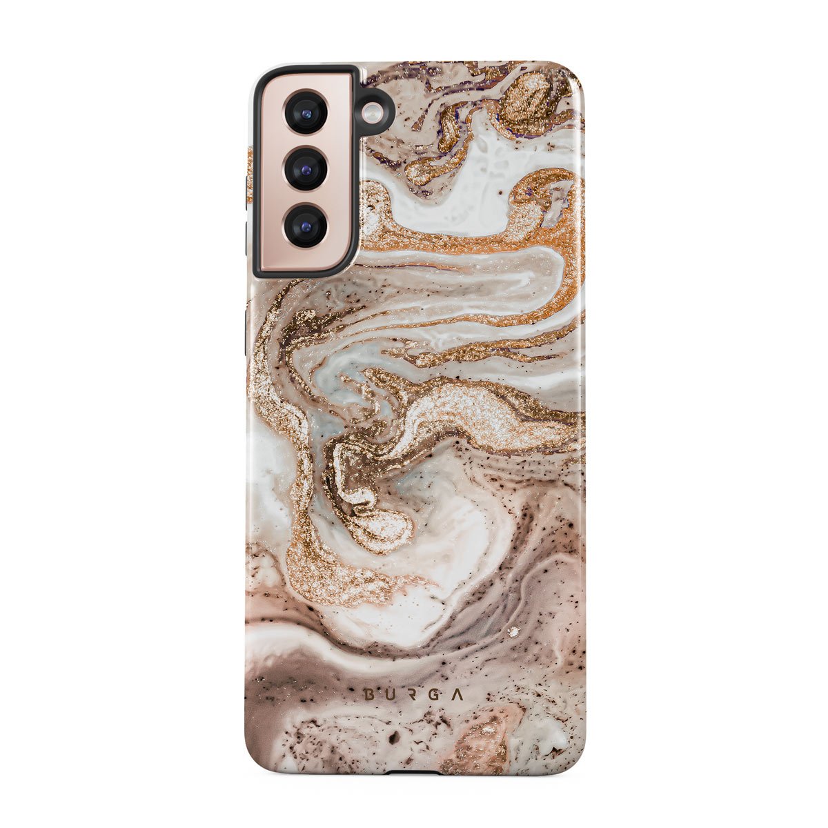 Our enchanting Cappuccino Samsung Galaxy S21 Plus phone case showcases a sophisticated and creamy marble pattern with golden swirls in it. The marble dream radiates elegance and luxury and is guaranteed to add some to your style.