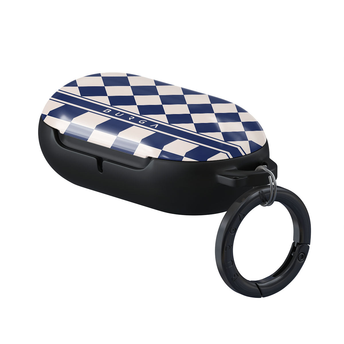 Embrace the essence of subtle luxury with our Check & Mate Samsung Galaxy Buds Plus case cover design. Blending eggshell and deep blue checkers, it evokes whispers of elegance. While diamonds grace the upper half, the lower half features a timeless chessboard pattern.