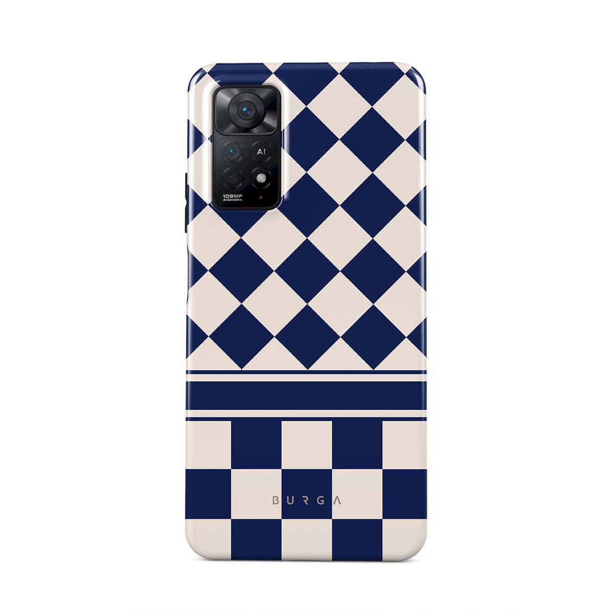 Embrace the essence of subtle luxury with our Check & Mate Xiaomi Redmi Note 11 Pro+ phone case design. Blending eggshell and deep blue checkers, it evokes whispers of elegance. While diamonds grace the upper half, the lower half features a timeless chessboard pattern.
