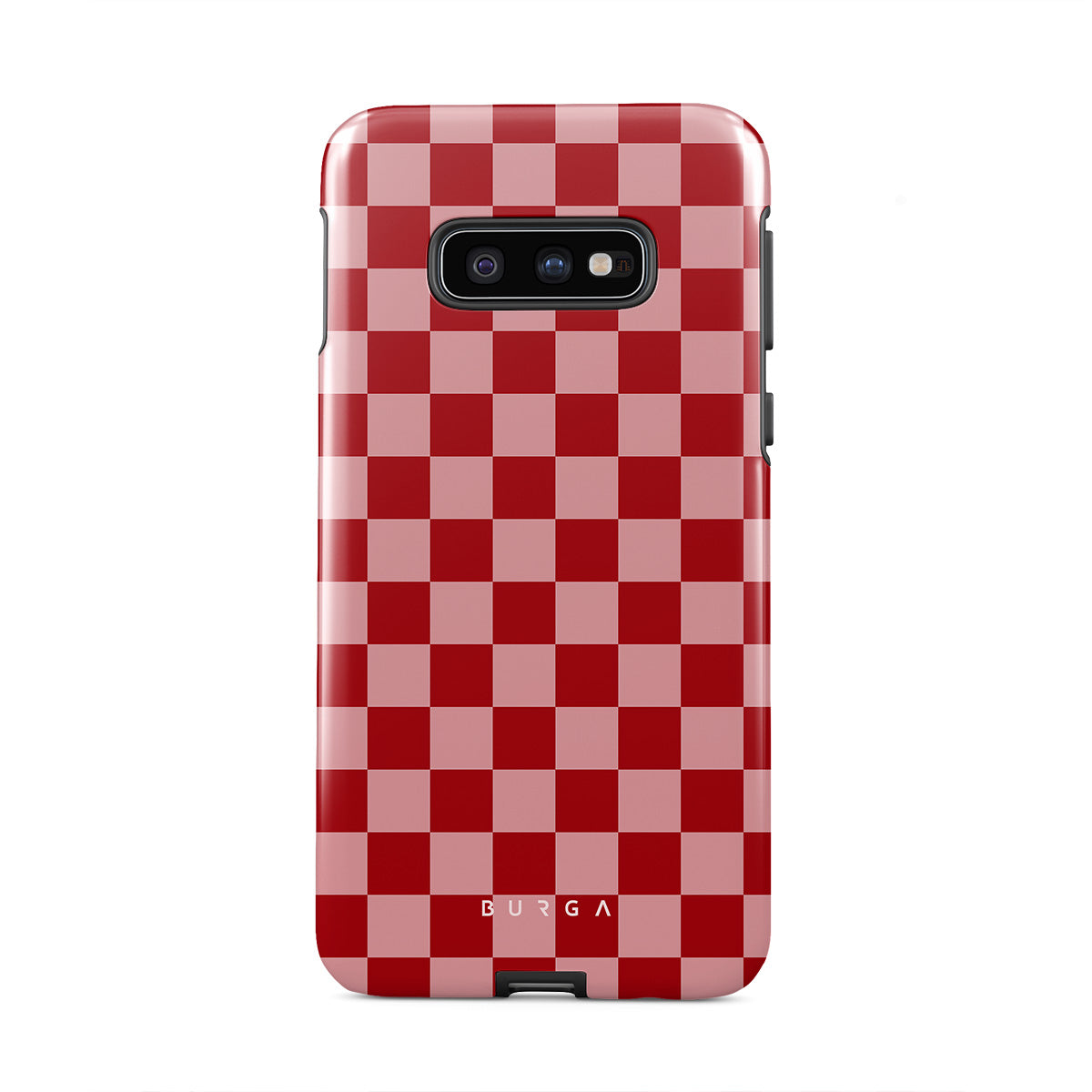 Bold, strong, and never on hold! Our Cheerleader - Samsung Galaxy S10E phone case design will turn your phone into the perfect accessory! The red checkered pattern adds that additional spark to your style while keeping your phone safe and sound in its perfect hard-shell case.