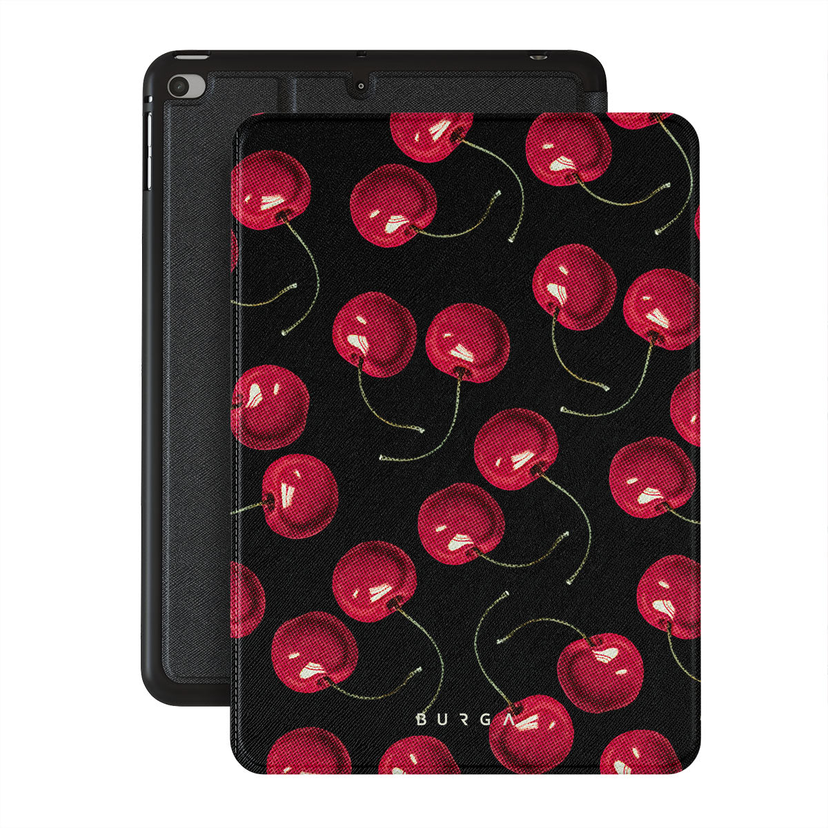 On a deep black background, rich red cherries stand out. Tempting and audacious, our Cherrybomb iPad Mini 7.9 (5th Gen) folio case design is perfect for anyone who likes to keep things simple yet striking.