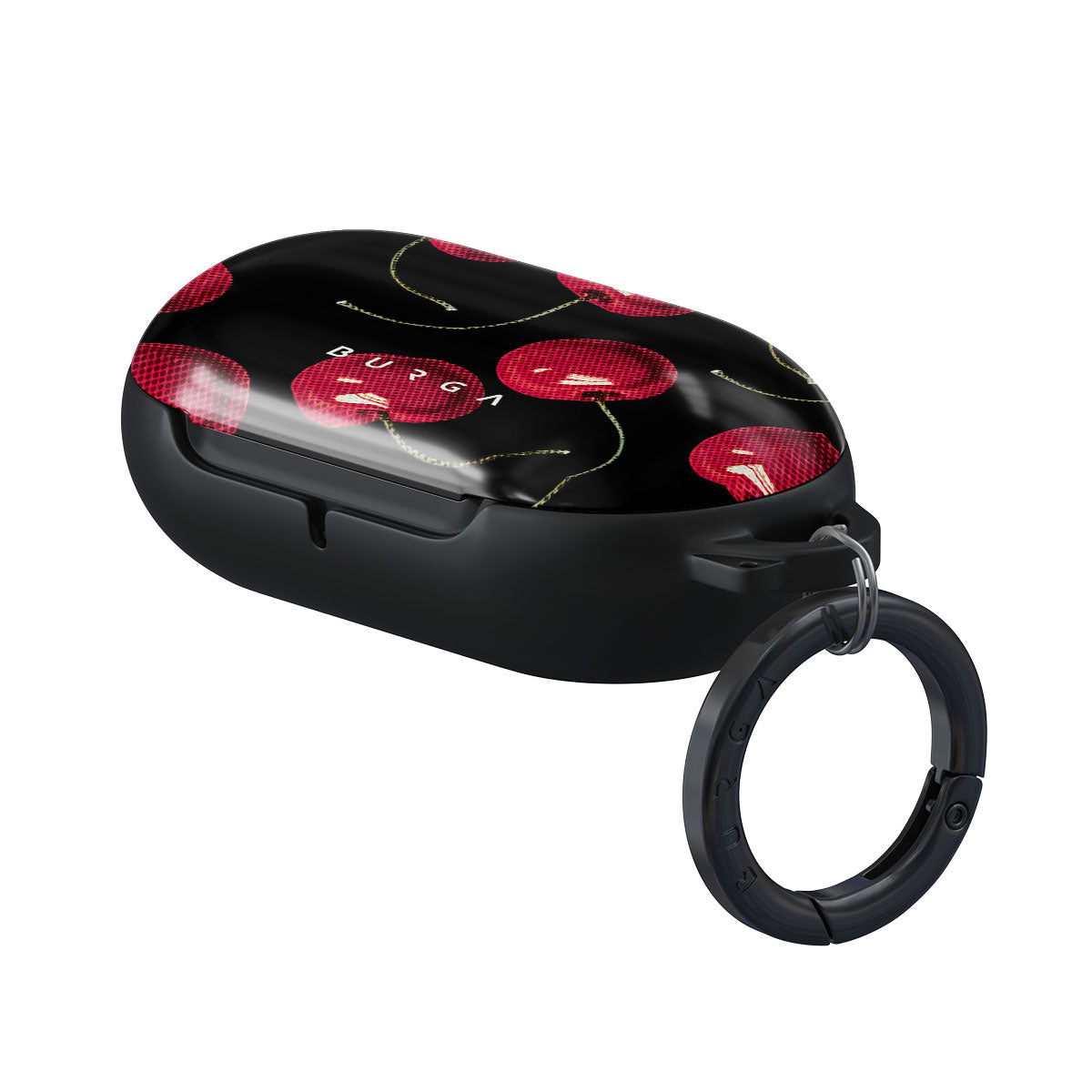On a deep black background, rich red cherries stand out. Tempting and audacious, our Cherrybomb Samsung Galaxy Buds case cover design is perfect for anyone who likes to keep things simple yet striking.
