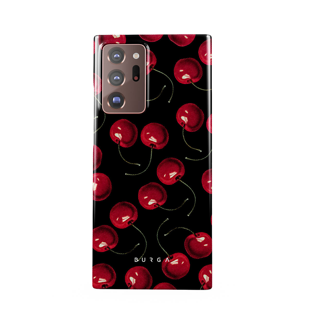 On a deep black background, rich red cherries stand out. Tempting and audacious, our Cherrybomb Samsung Galaxy Note 20 Ultra 4G / 5G phone case design is perfect for anyone who likes to keep things simple yet striking.