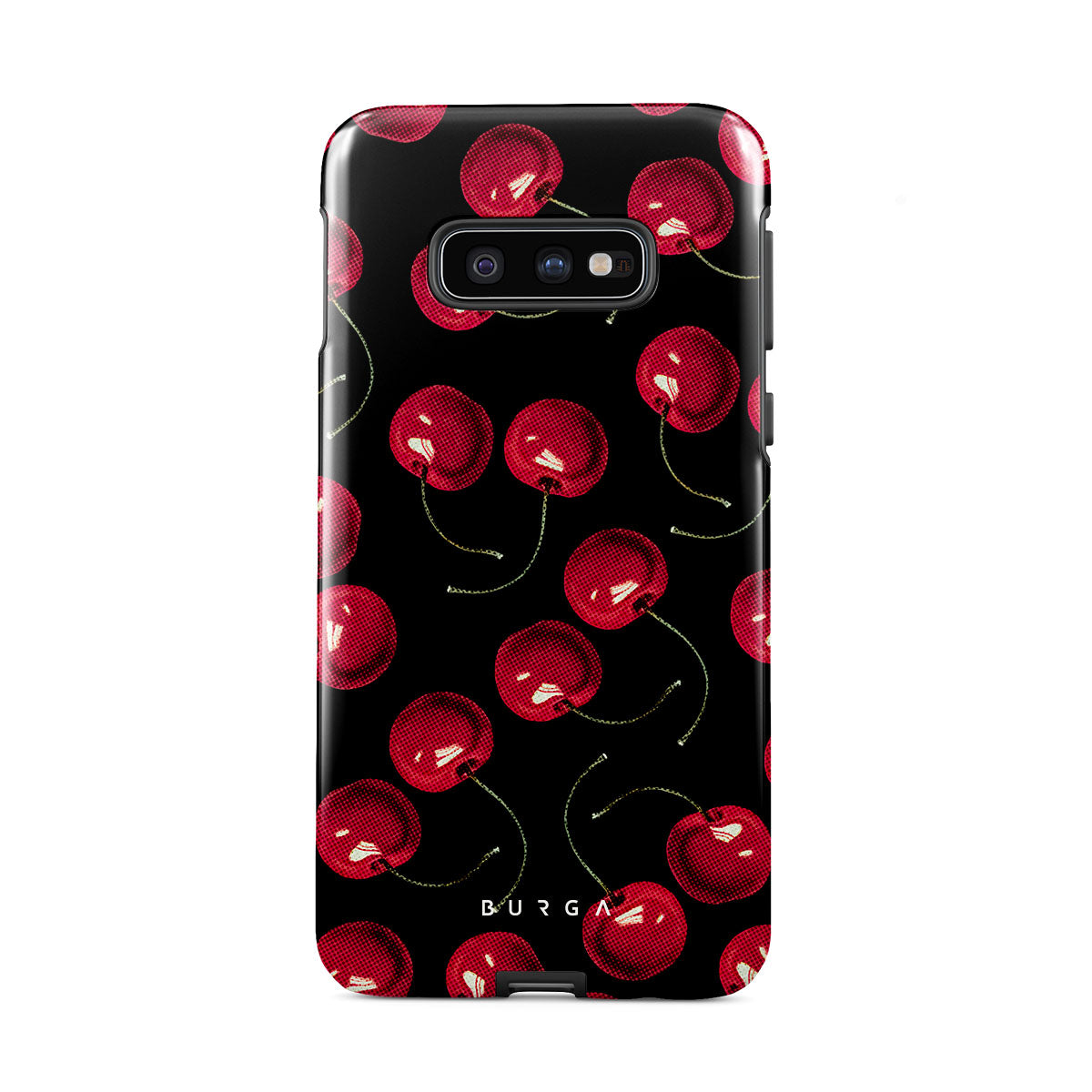 On a deep black background, rich red cherries stand out. Tempting and audacious, our Cherrybomb Samsung Galaxy S10E phone case design is perfect for anyone who likes to keep things simple yet striking.