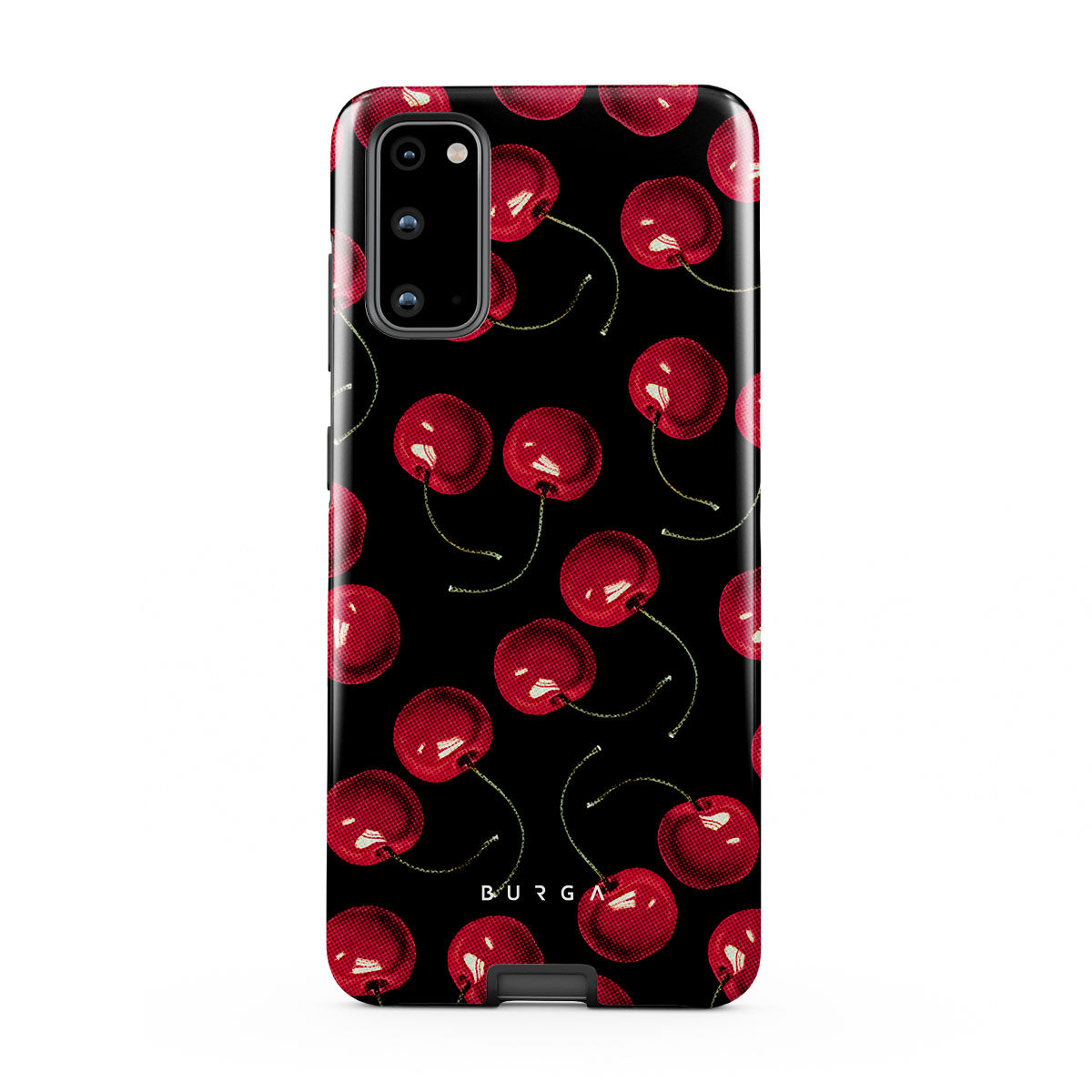 On a deep black background, rich red cherries stand out. Tempting and audacious, our Cherrybomb Samsung Galaxy S20 FE 4G / 5G phone case design is perfect for anyone who likes to keep things simple yet striking.