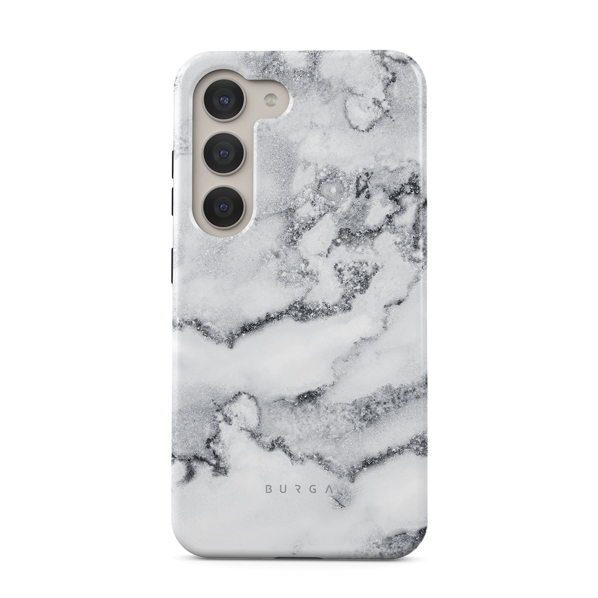 Our beautiful White Winter Samsung Galaxy S23 phone case is a genuine white marble dream. The classy marble pattern where white meets black is a timeless piece needed in every collection of a true accessory enthusiast. Allow this case to add style to your phone while also taking care of the much-needed protection.