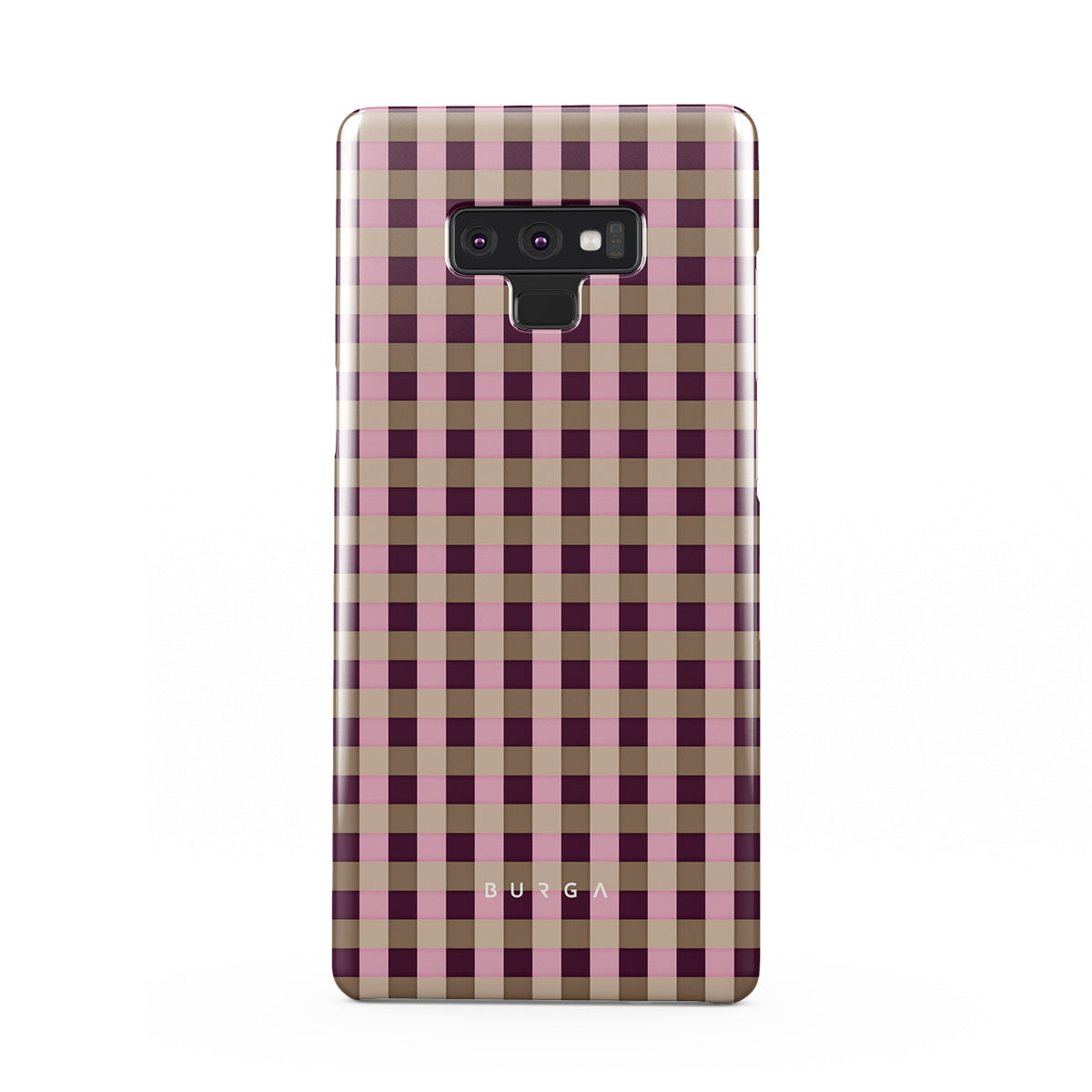 This design features: pink and burgundy plaid pattern, modern checkered style.