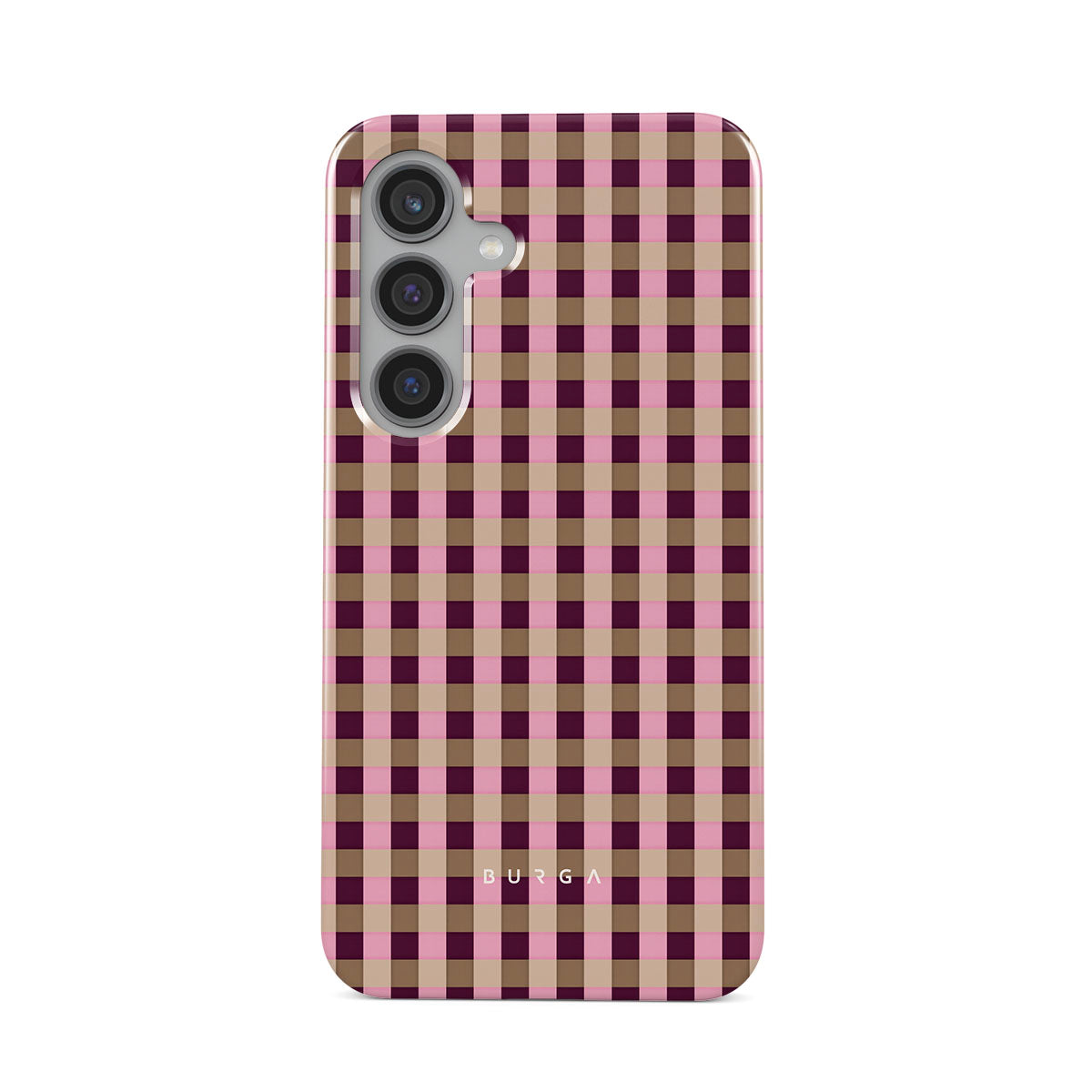 This design features: pink and burgundy plaid pattern, modern checkered style.