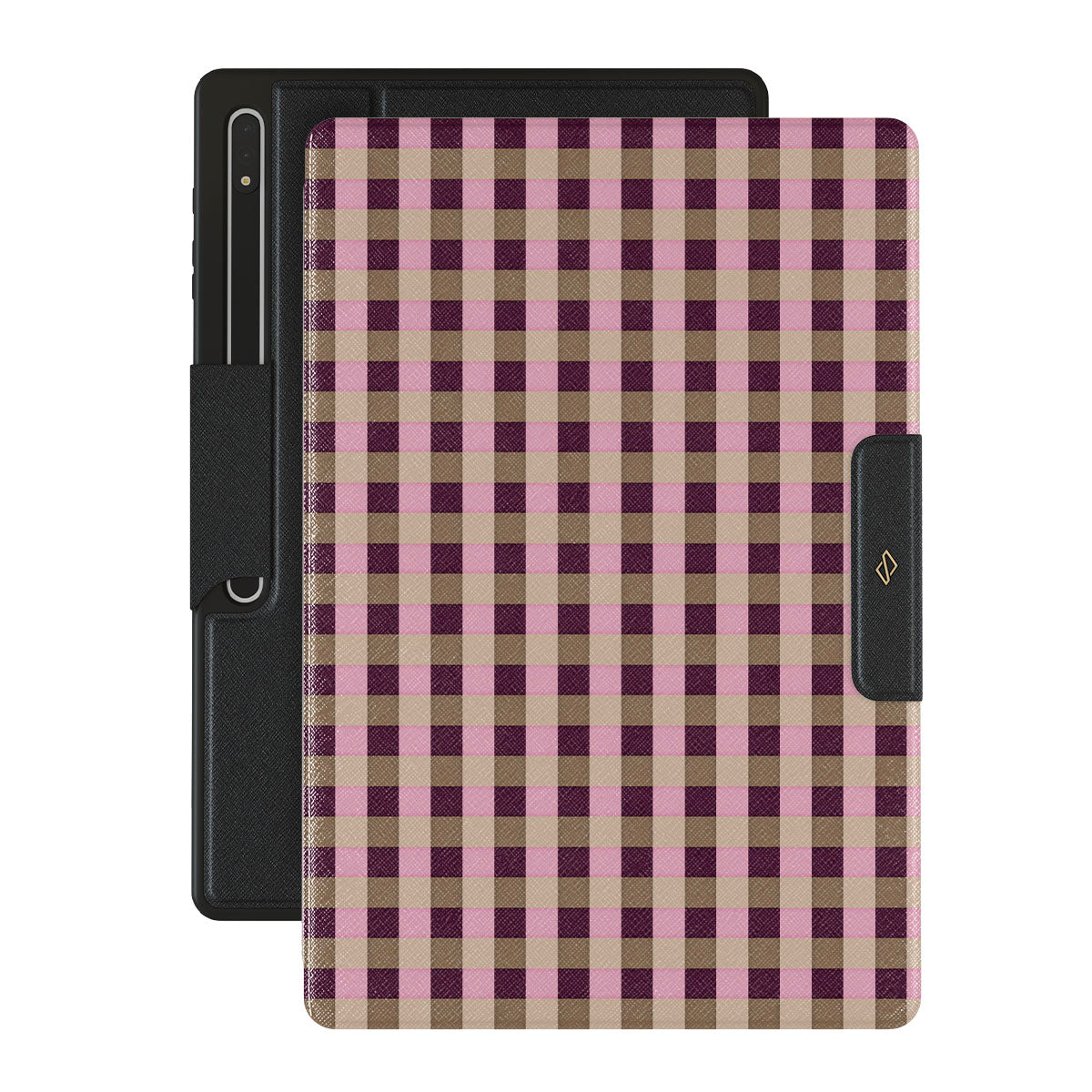 This design features: pink and burgundy plaid pattern, modern checkered style.