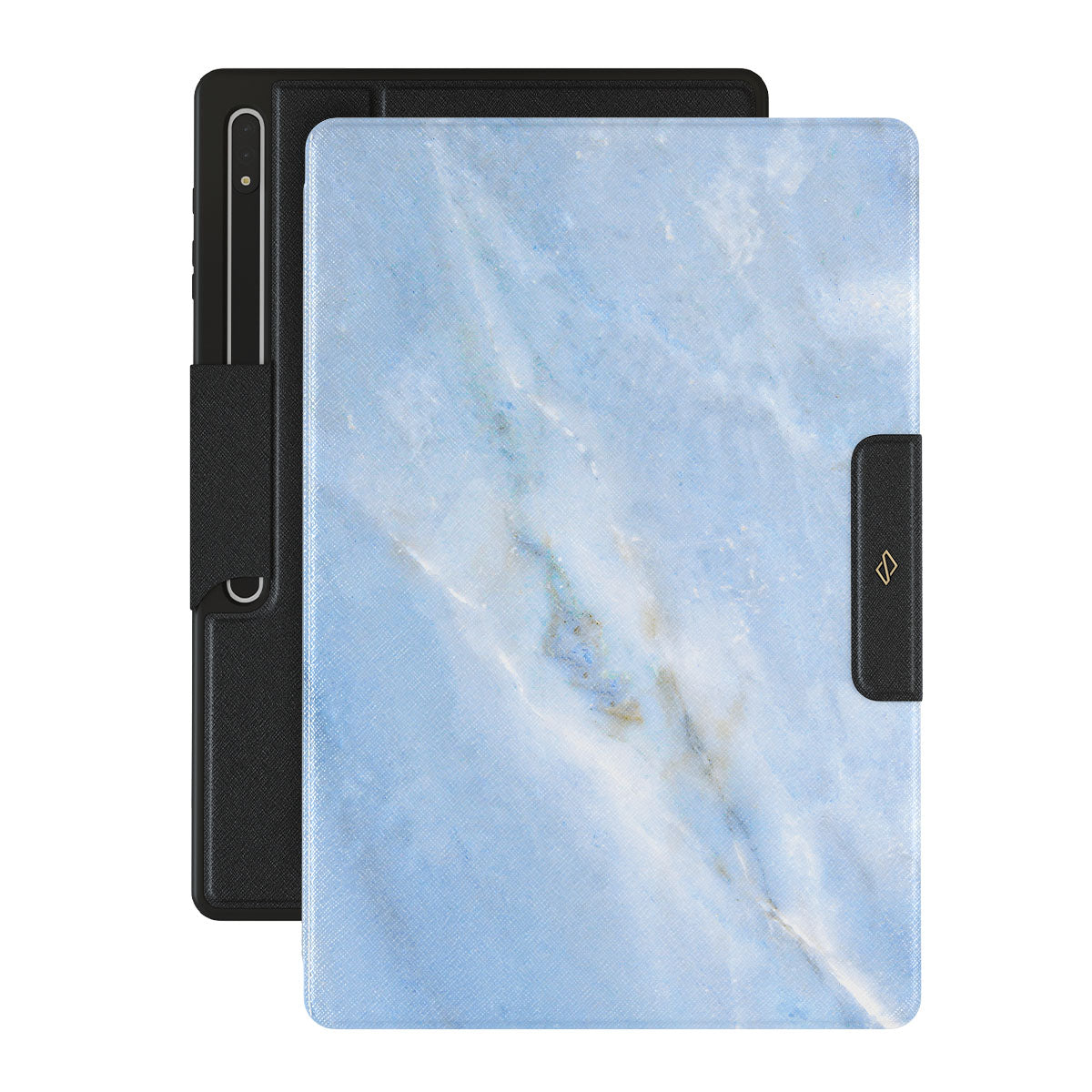 Bright, blue, and beautiful. The sky surrounds us all. Look up, remember and cherish the days of laying on the grass and counting the clouds. Take this feeling of vivid imagination with a protective Samsung Galaxy Tab S8 Ultra folio case designed and inspired by the shapeshifting clouds.