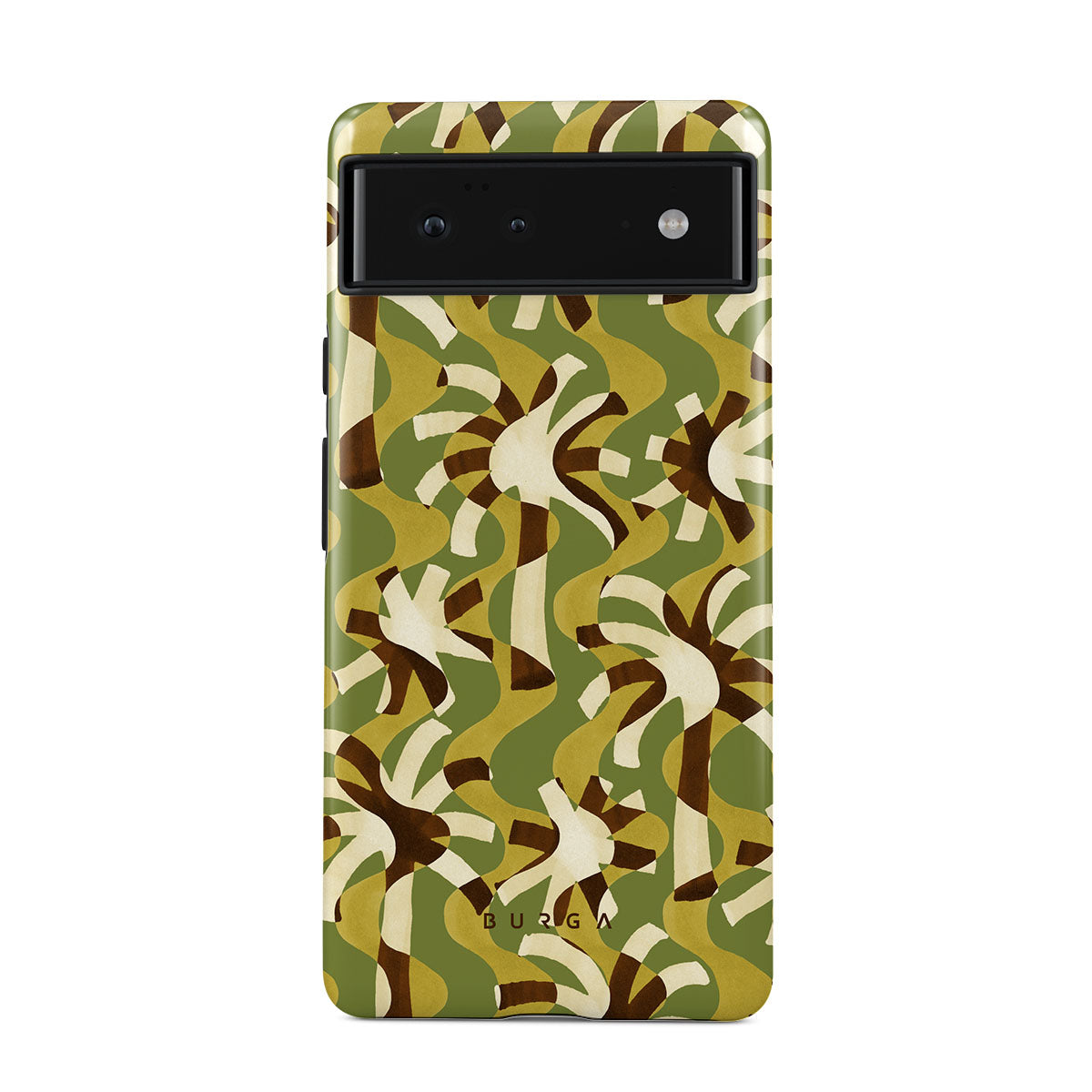 A leafy blur of tropical motion. This Google Pixel 6 Pro phone case design feels like a memory of a rainforest walk you never took, but wish you had. Hot, hazy, and happily lost.