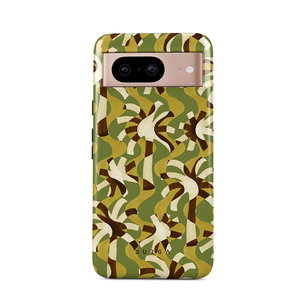 A leafy blur of tropical motion. This Google Pixel 8 phone case design feels like a memory of a rainforest walk you never took, but wish you had. Hot, hazy, and happily lost.