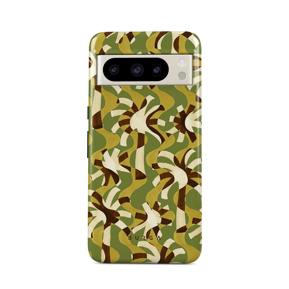 A leafy blur of tropical motion. This Google Pixel 8 Pro phone case design feels like a memory of a rainforest walk you never took, but wish you had. Hot, hazy, and happily lost.