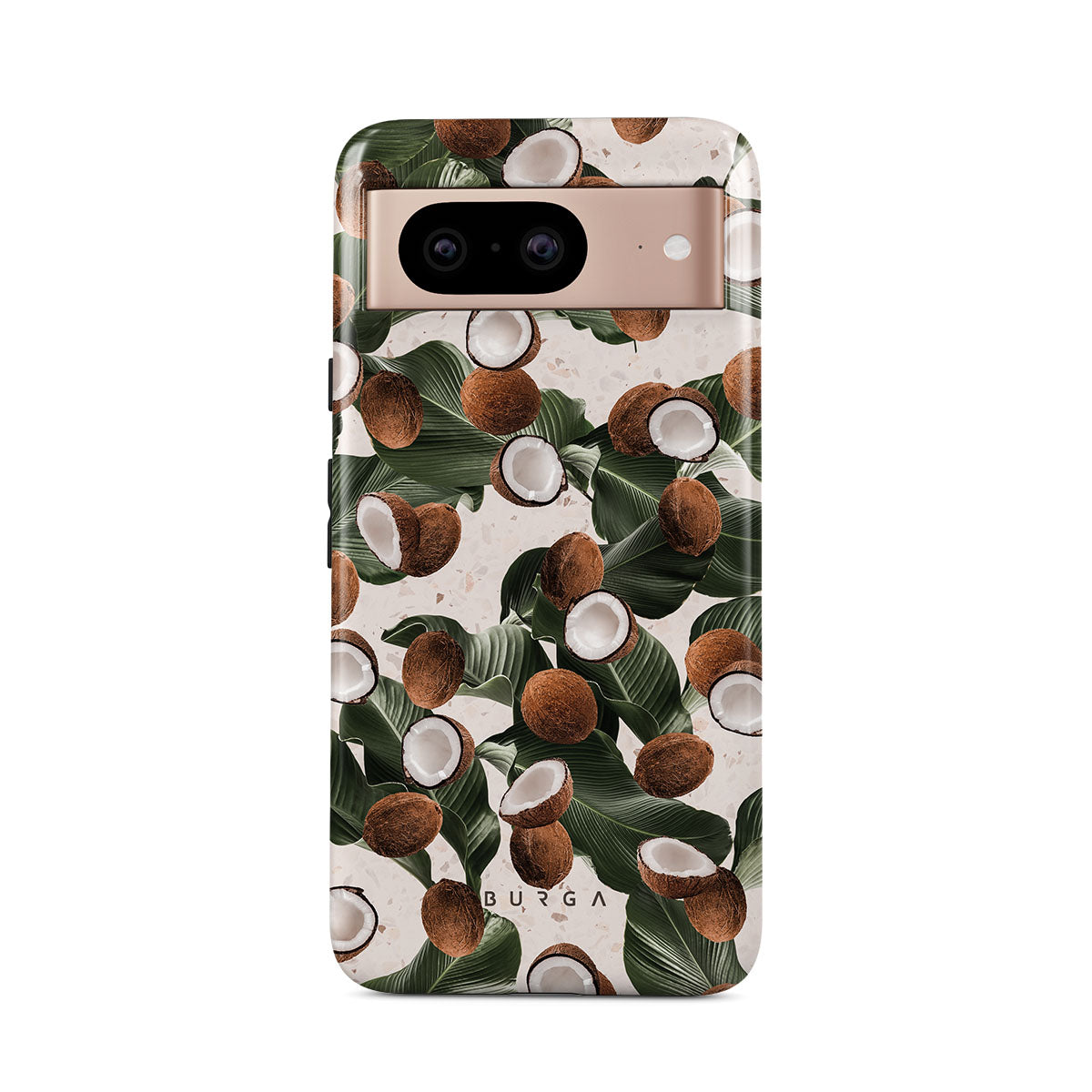 Coconut Crush Google Pixel 8 phone case showcases a soft creme color design with a playful addition of coconuts on top. The unexpected design duo will add a touch of tropical playfulness to your style while offering heavy-duty protection for your cell phone.
