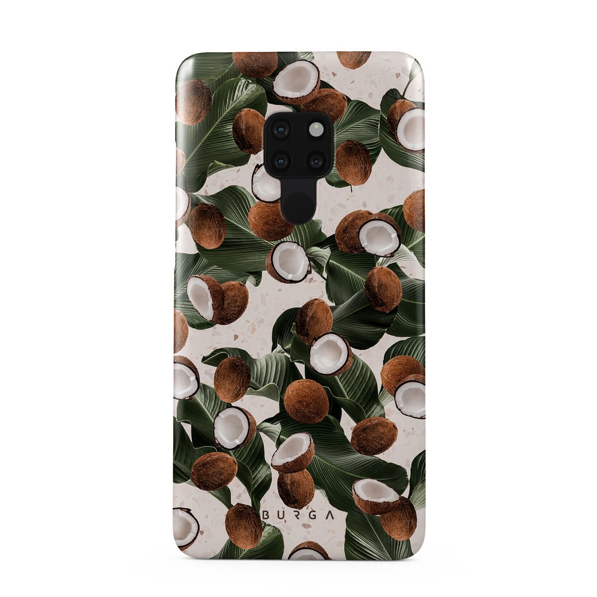 Coconut Crush Huawei Mate 20 phone case showcases a soft creme color design with a playful addition of coconuts on top. The unexpected design duo will add a touch of tropical playfulness to your style while offering heavy-duty protection for your cell phone.