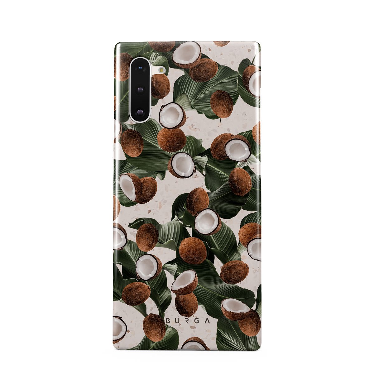 Coconut Crush Samsung Galaxy Note 10 phone case showcases a soft creme color design with a playful addition of coconuts on top. The unexpected design duo will add a touch of tropical playfulness to your style while offering heavy-duty protection for your cell phone.