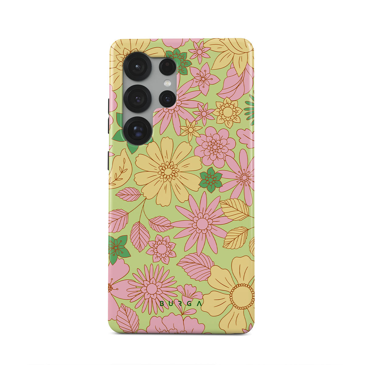 The big, bold, and colorful floral pattern of the Amalfi Coast Samsung Galaxy S25 Ultra phone case encases the beautiful and dramatic nature of the coast that inspired the name. Steep cliffs, bright scenery, and colorful houses. Be as daring as the people that live in them, add some boldness to your style, and keep your phone safe while exploring all the cliffs yourself!