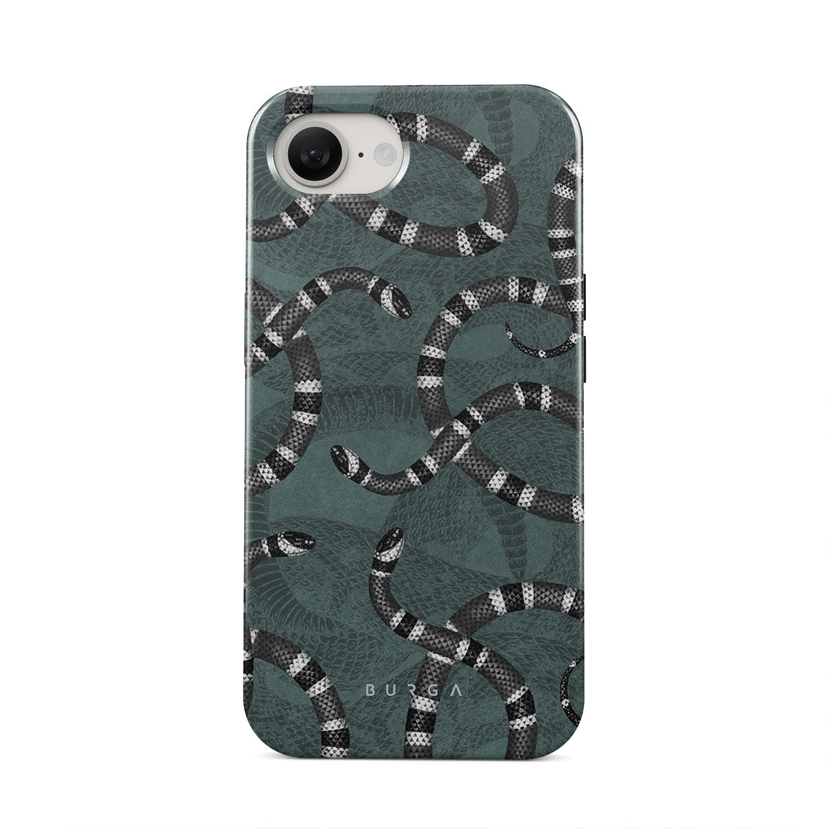 It might feel like something is lurking away – the feeling of unexpected is often mistaken for danger. Face your fears with a cool snake print iPhone 16e phone case. Heavy-duty protection with a heavy-duty design is always a great choice.