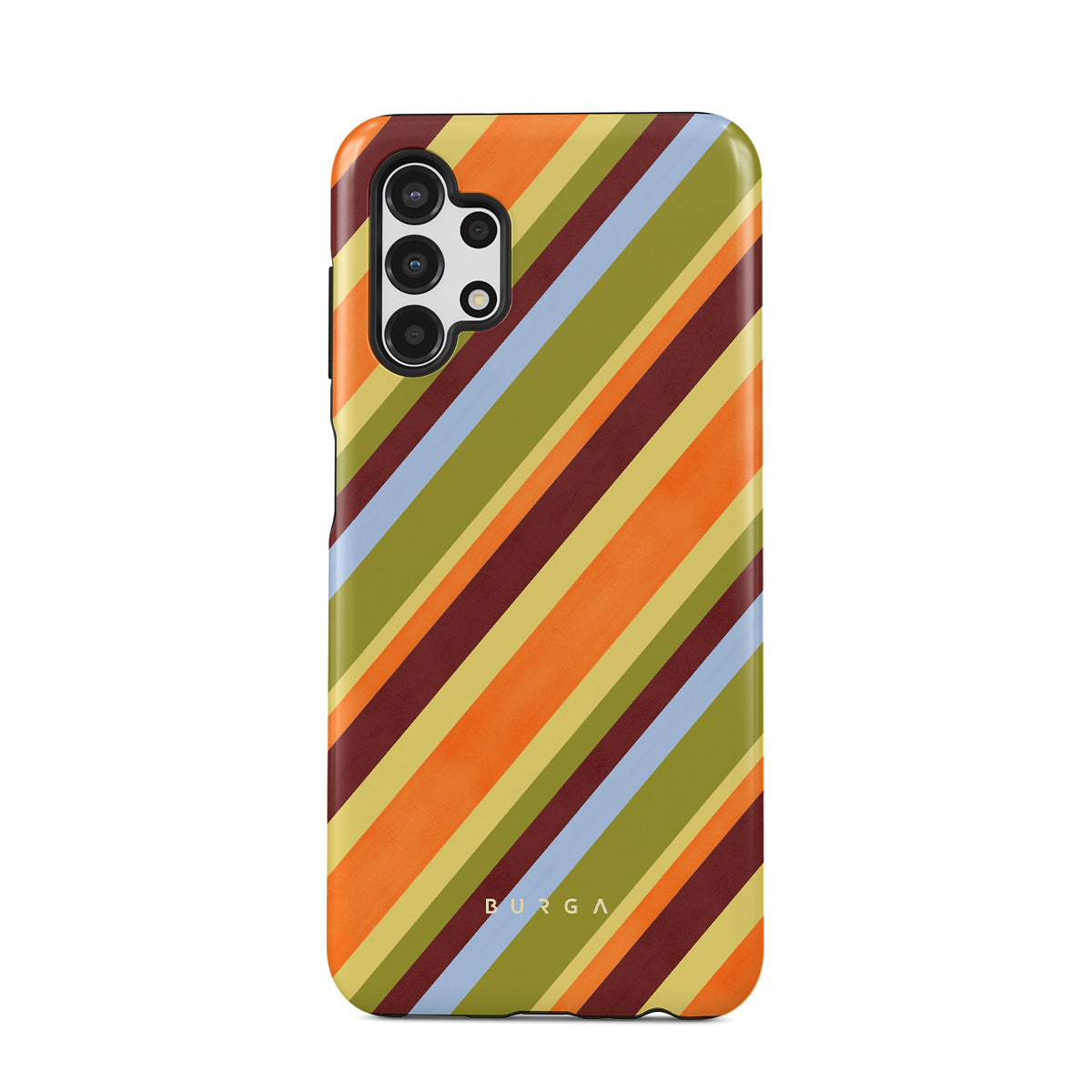 The kind of stripes you’d find on a beach towel left out since noon. Citrus meets spice meets “where’s my other sandal?” The Copacabana Samsung Galaxy A13 4G phone case design: it’s carefree with a side of extra.