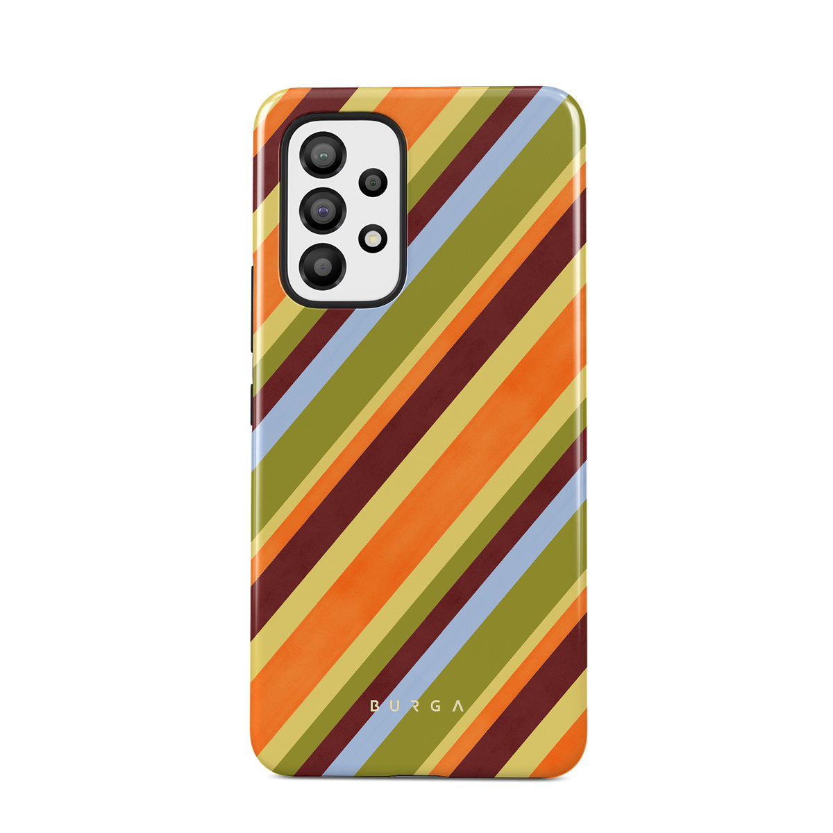 The kind of stripes you’d find on a beach towel left out since noon. Citrus meets spice meets “where’s my other sandal?” The Copacabana Samsung Galaxy A53 phone case design: it’s carefree with a side of extra.