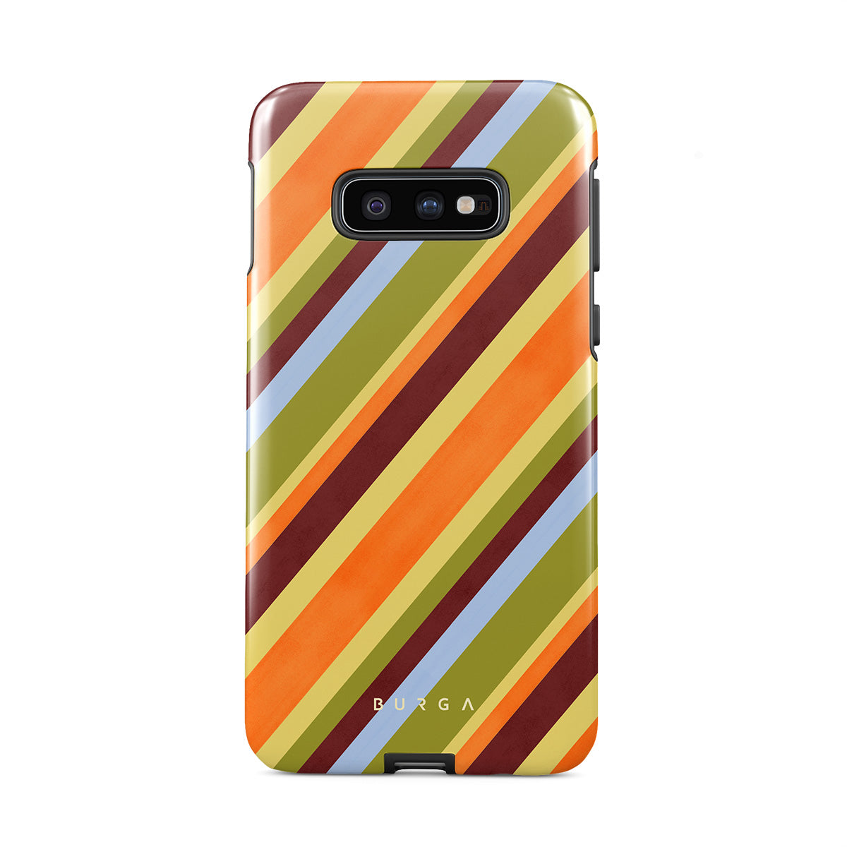 The kind of stripes you’d find on a beach towel left out since noon. Citrus meets spice meets “where’s my other sandal?” The Copacabana Samsung Galaxy S10E phone case design: it’s carefree with a side of extra.