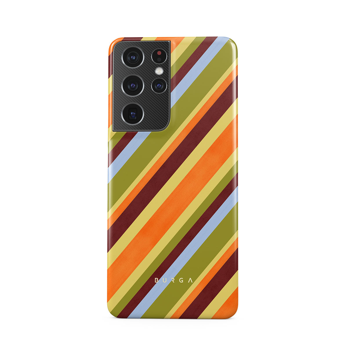 The kind of stripes you’d find on a beach towel left out since noon. Citrus meets spice meets “where’s my other sandal?” The Copacabana Samsung Galaxy S21 Ultra phone case design: it’s carefree with a side of extra.