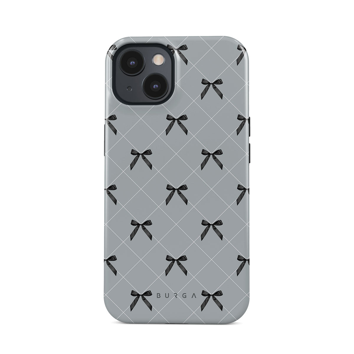 A subtle hint to a world of dance and soft melodies. Crisscrossing bows over a muted gray tone capture the flirtatious essence of the coquette-core aesthetic. Playful and sweet, our Coquette iPhone 15 phone case design is perfect for those who find beauty in the details.