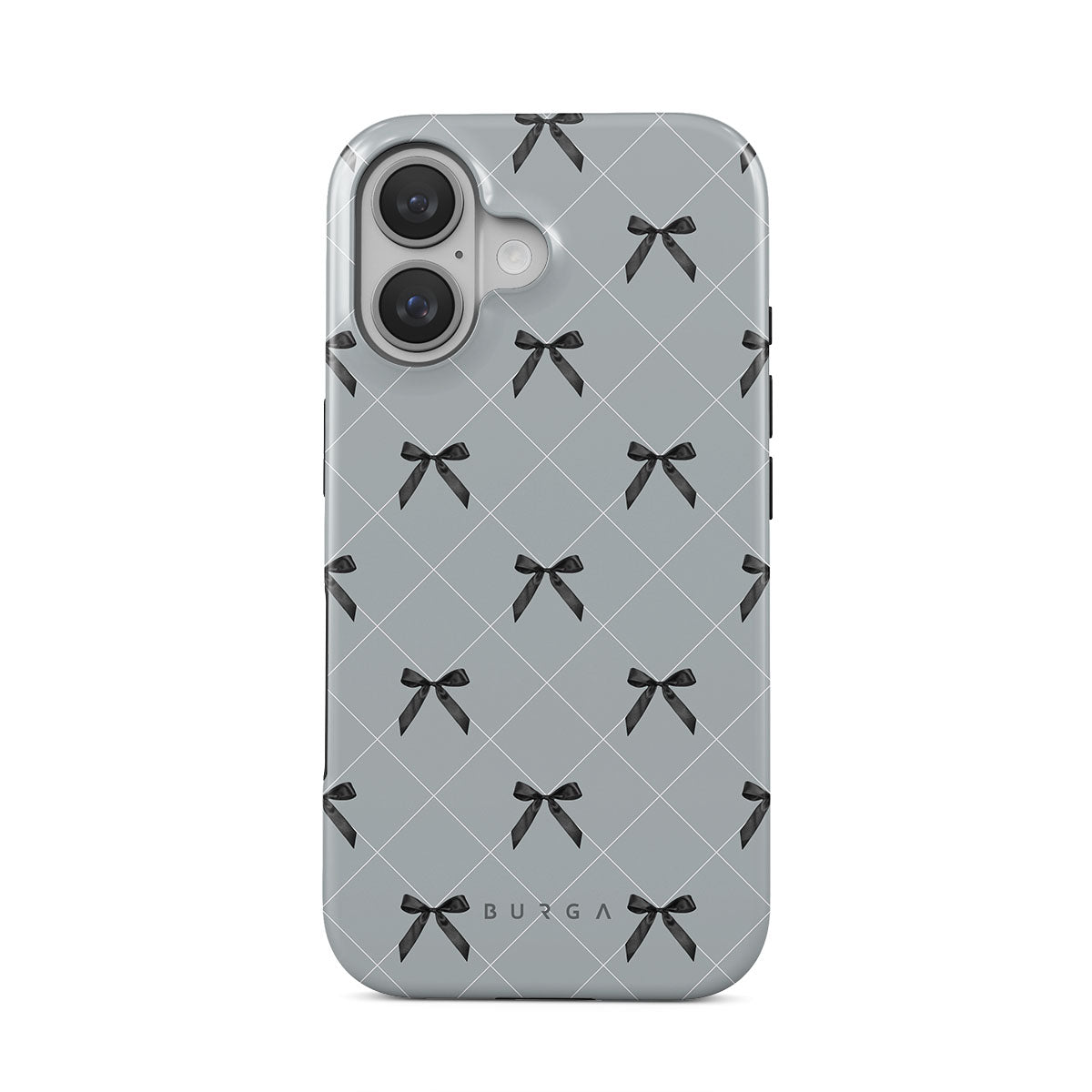 A subtle hint to a world of dance and soft melodies. Crisscrossing bows over a muted gray tone capture the flirtatious essence of the coquette-core aesthetic. Playful and sweet, our Coquette iPhone 16 Plus phone case design is perfect for those who find beauty in the details.
