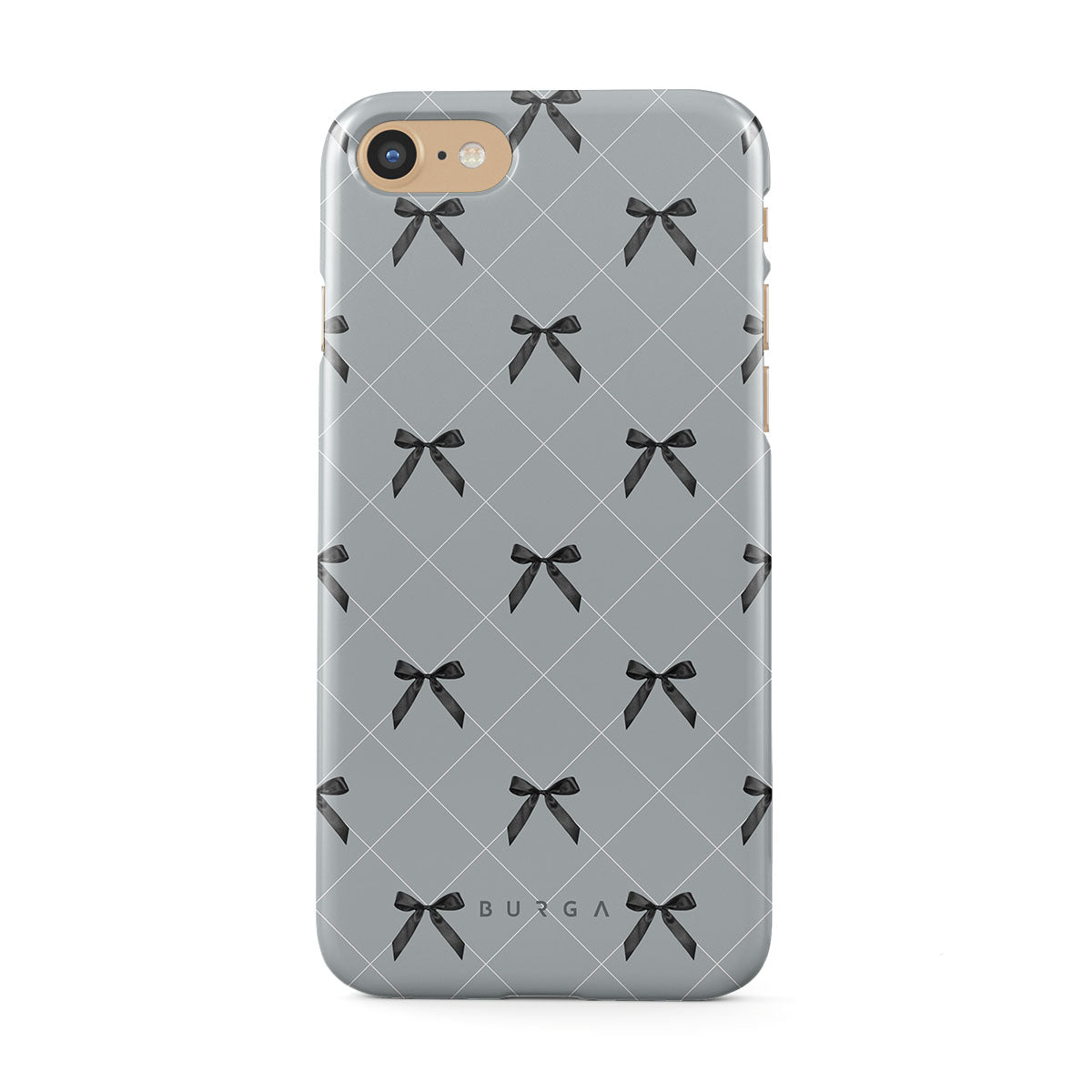 A subtle hint to a world of dance and soft melodies. Crisscrossing bows over a muted gray tone capture the flirtatious essence of the coquette-core aesthetic. Playful and sweet, our Coquette iPhone SE (2022) phone case design is perfect for those who find beauty in the details.