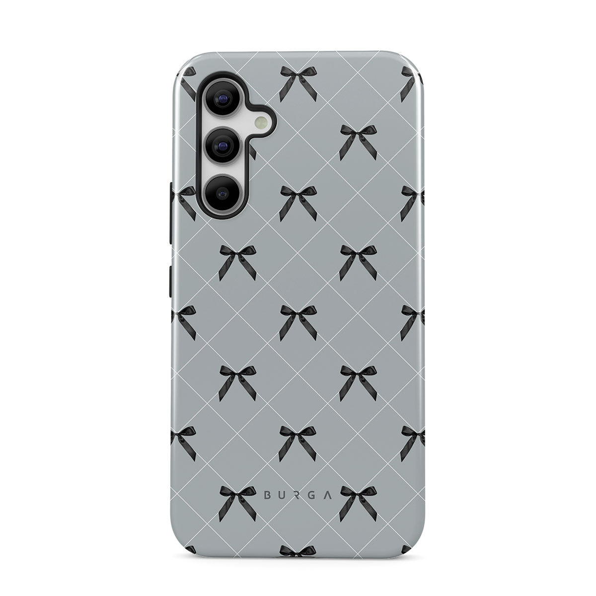 A subtle hint to a world of dance and soft melodies. Crisscrossing bows over a muted gray tone capture the flirtatious essence of the coquette-core aesthetic. Playful and sweet, our Coquette Samsung Galaxy A55 phone case design is perfect for those who find beauty in the details.