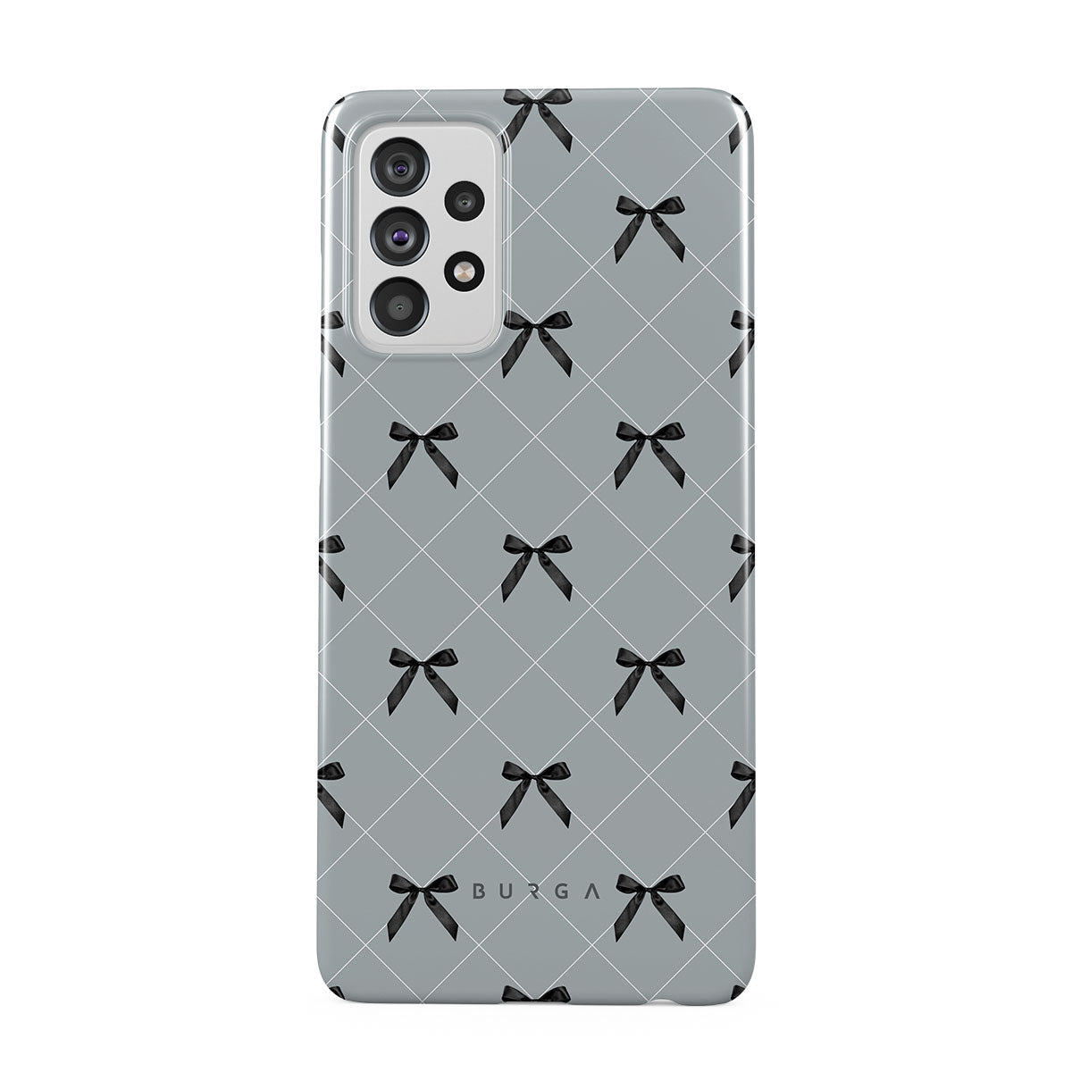 A subtle hint to a world of dance and soft melodies. Crisscrossing bows over a muted gray tone capture the flirtatious essence of the coquette-core aesthetic. Playful and sweet, our Coquette Samsung Galaxy A72 4G / 5G phone case design is perfect for those who find beauty in the details.