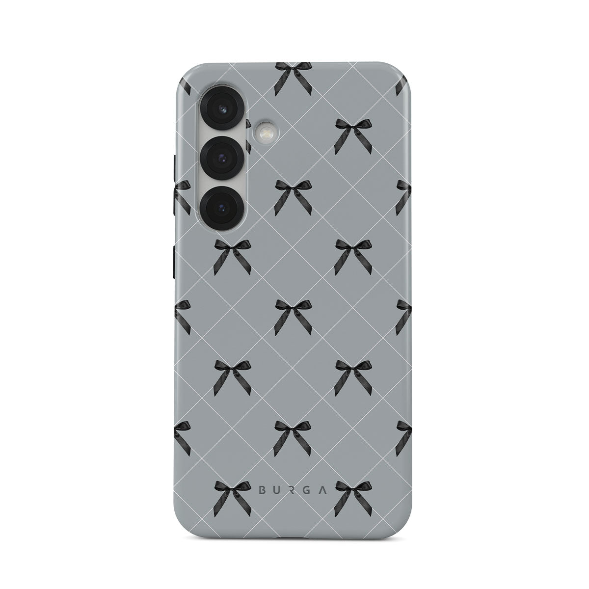 A subtle hint to a world of dance and soft melodies. Crisscrossing bows over a muted gray tone capture the flirtatious essence of the coquette-core aesthetic. Playful and sweet, our Coquette Samsung Galaxy S25 Plus phone case design is perfect for those who find beauty in the details.
