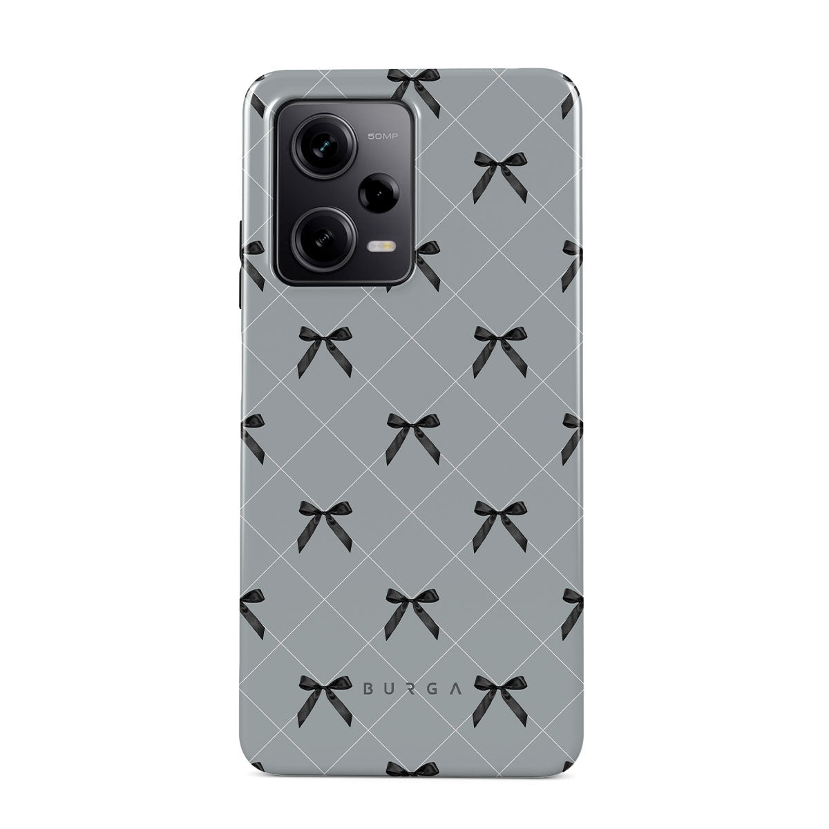 A subtle hint to a world of dance and soft melodies. Crisscrossing bows over a muted gray tone capture the flirtatious essence of the coquette-core aesthetic. Playful and sweet, our Coquette Xiaomi Redmi Note 12 Pro 5G phone case design is perfect for those who find beauty in the details.