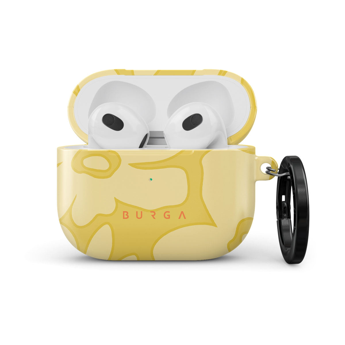 Our bright yellow Apple AirPods 3 case cover features bold, beautiful flowers that evoke a sense of nostalgia and happiness. This cheerful floral design captures the essence of joyful moments, making your device a reminder of sunny memories. Perfect for brightening up your day.